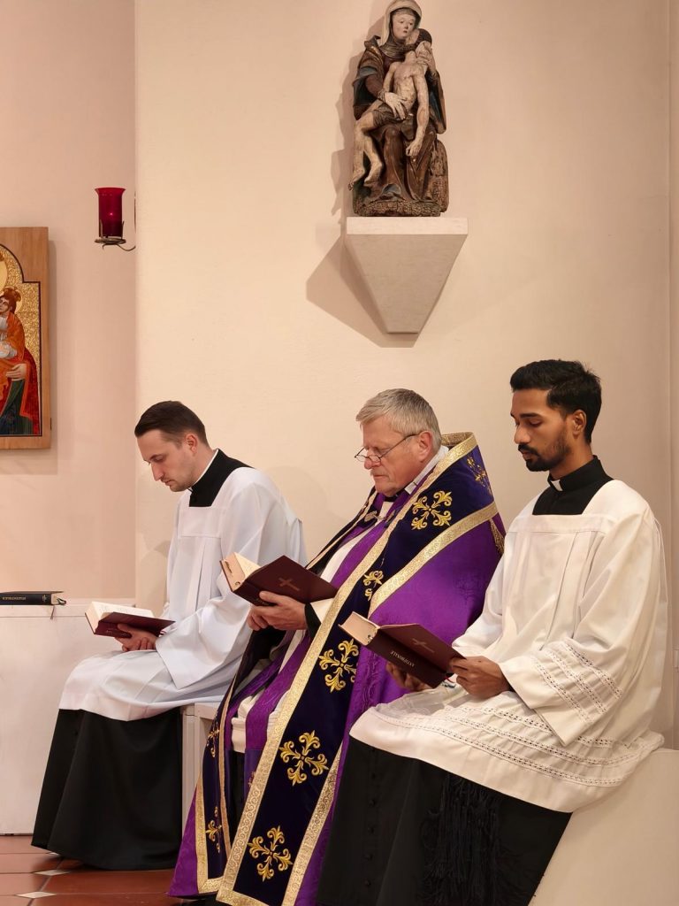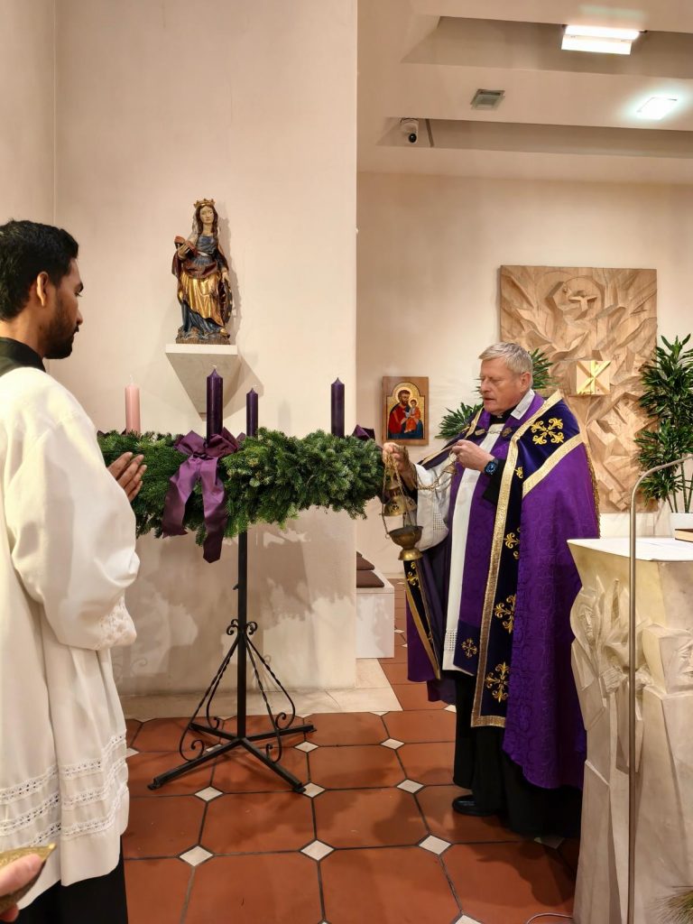 Mit der feierlichen Vesper und der Segnung der Adventskränze sind wir in das neue Kirchenjahr eingetreten. In seiner Predigt, in der Direktor Leitner den Hymnus, die Psalmen und die Kurzlesung der Vesper als Grundlage nahm, sagte er: »Gottes Kommen ist kein ferner Donnerschlag, sondern die sanfte, demütige Ankunft des Gottesknechts, der unsere Schuld auf sich nimmt.« Nach der Vesper folgte noch ein gemütliches Beisammensein bei Lebkuchen und Wein in unserem Refektorium.