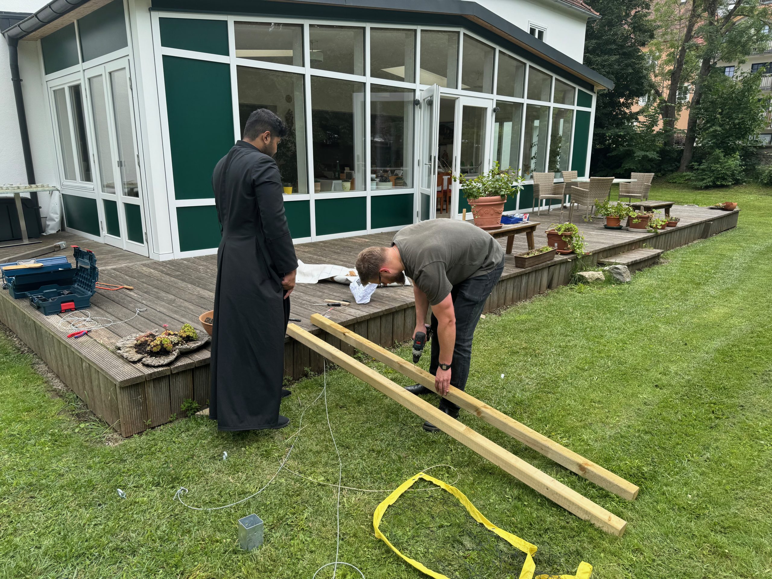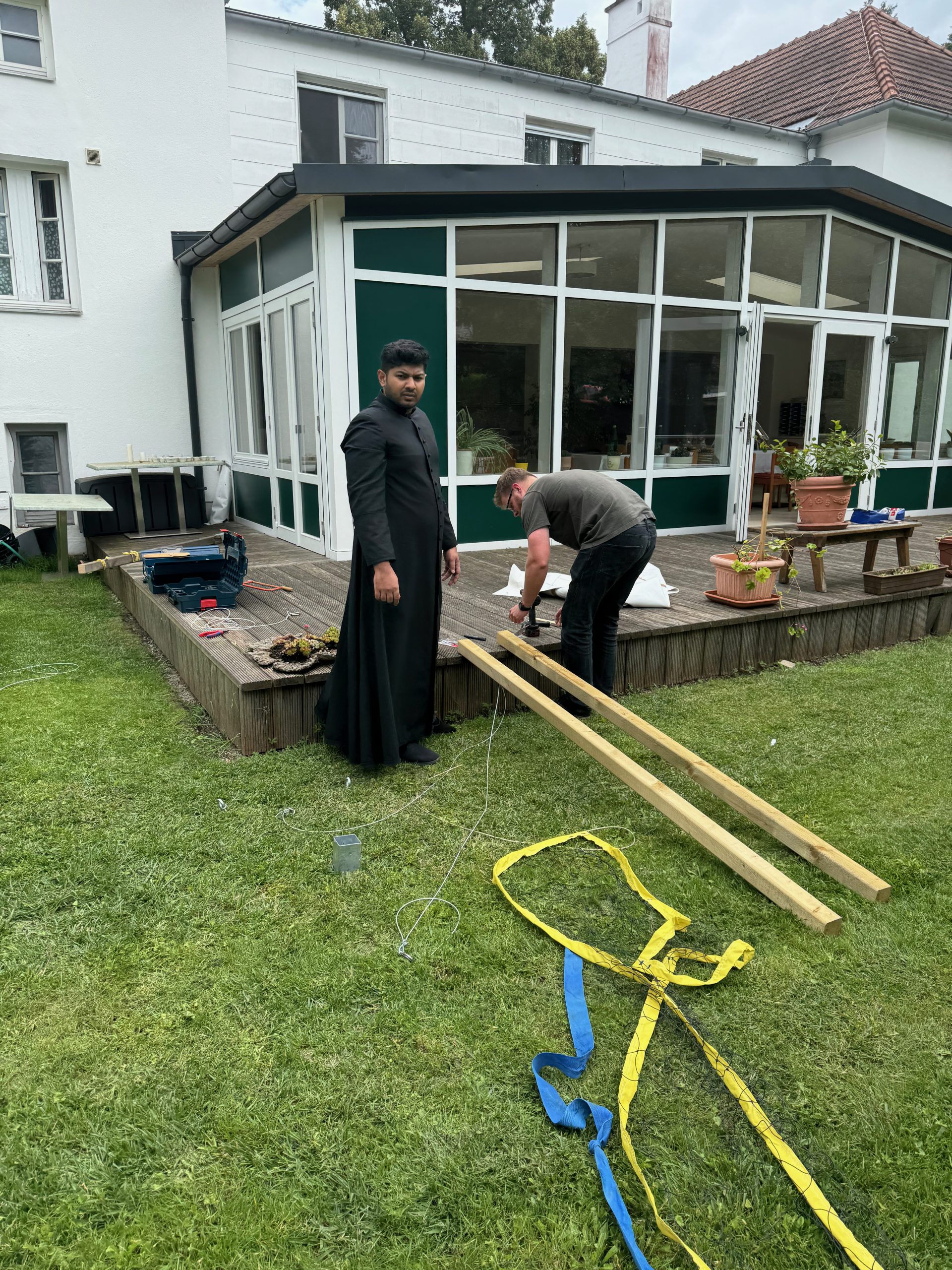 … hat uns unser Direktor ein neues – professionelles! – Volleyballnetz spendiert. Gemeinsam mit Josef und Br. Rejoice wurde es in unserem Seminargarten aufgebaut.