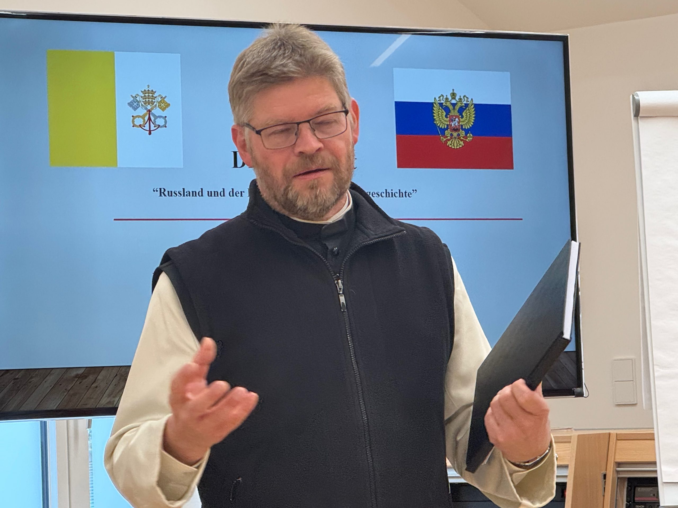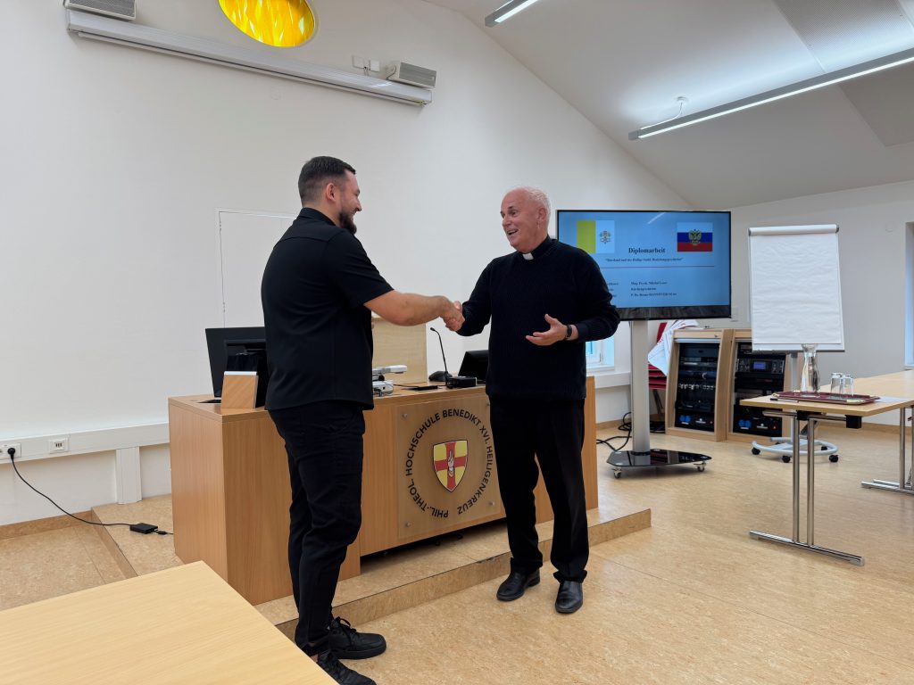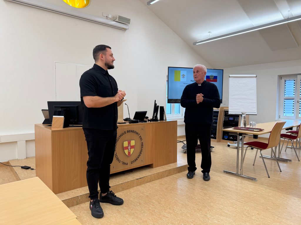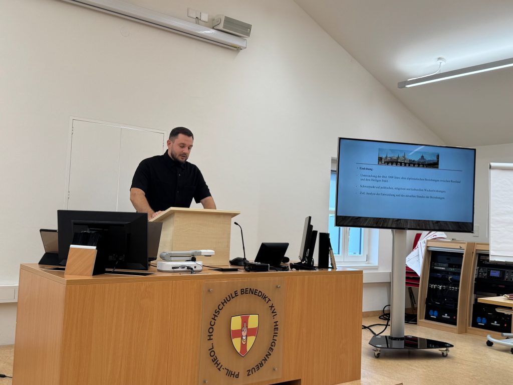 Mit einer ausgezeichneten Arbeit über die Beziehungen zwischen dem Heiligen Stuhl und Russland hat unser Seminarist Nikolai, gebürtiger Moskauer, der aber Priesteramtskandidat im Bistum Eichstätt ist, sein Studium an unserer Hochschule abgeschlossen. Rektor Klausnitzer gratulierte ihm zur Arbeit und zur heutigen Vorstellung.