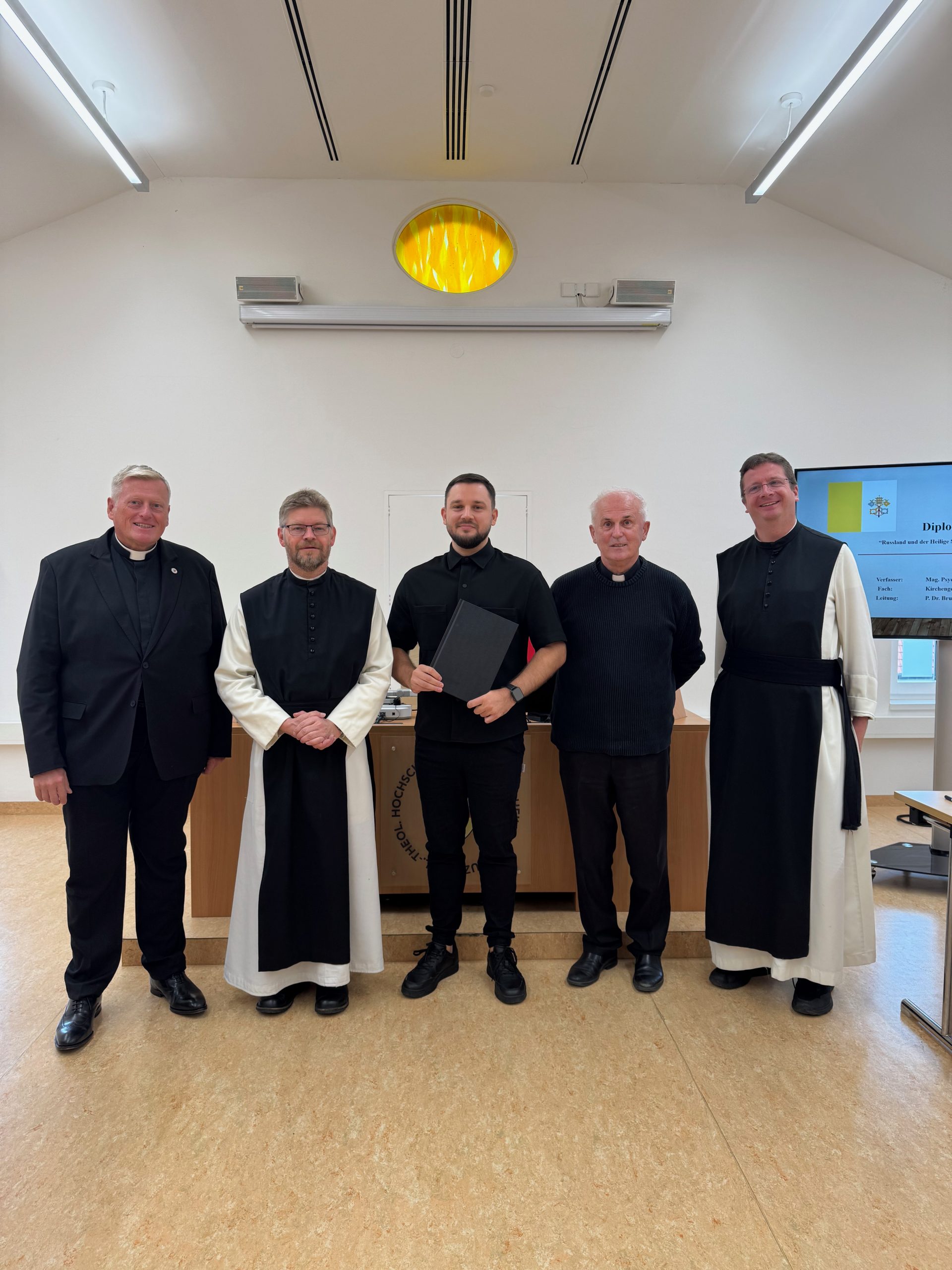 Wir alle gratulieren Nikolai zum Studienabschluss und wünschen ihm auf dem Weg zur Diakonenweihe (die im Juni 2025 geplant ist) viel Segen und Freude!