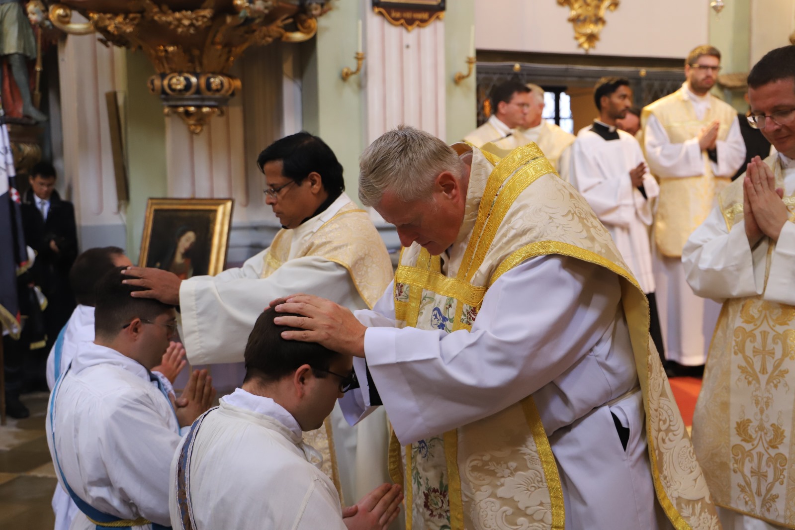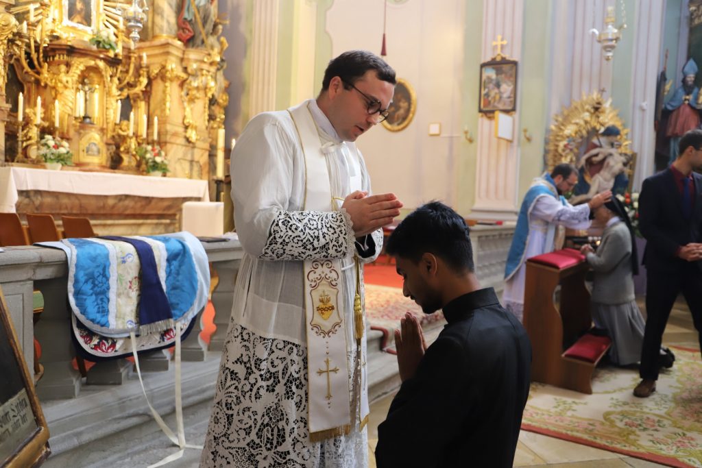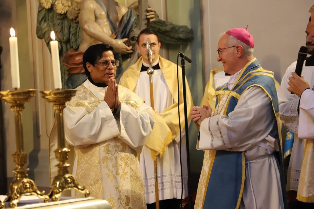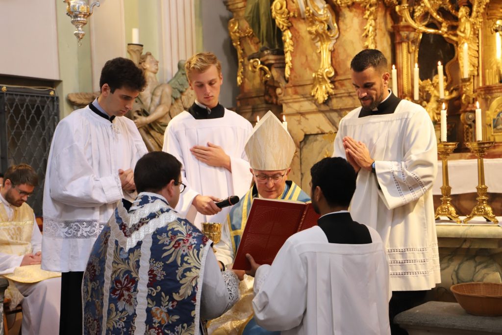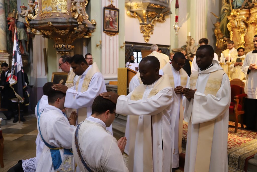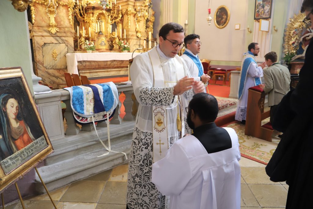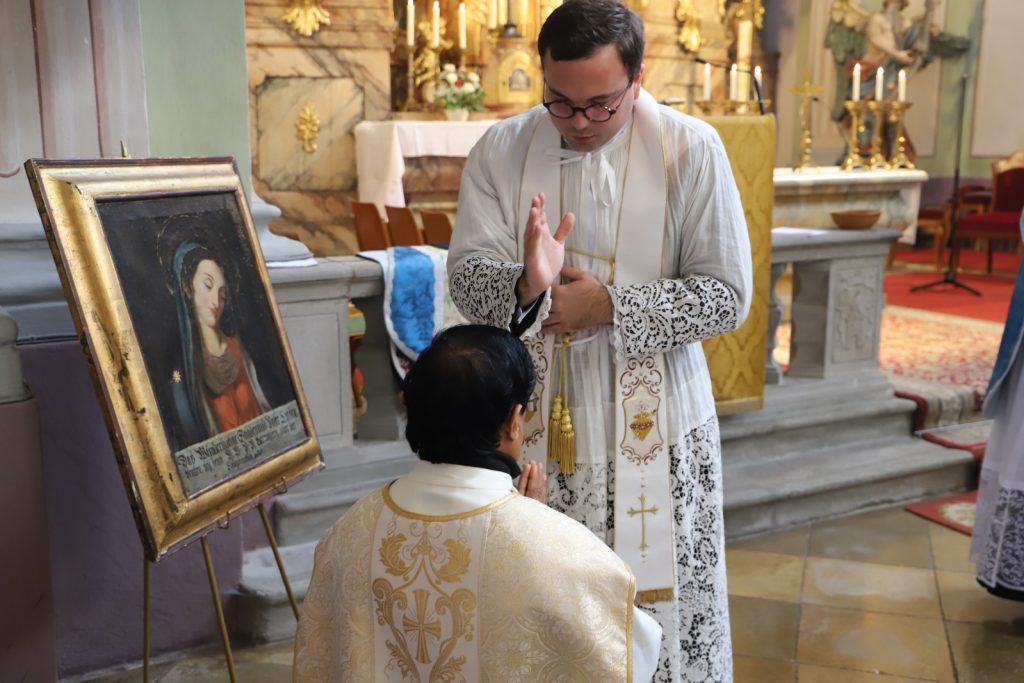 Die Gemeinschaft der Botschafter der Immaculata (Messengers of Mary Immaculate Conception) mit ihrem Generalsuperior, Fr. Joseph Thannikott kann sich sehr über drei Neupriester in ihrer Gemeinschaft freuen. Gemeinsam mit der Seminargemeinschaft des Leopoldinums, in der P. Stephan, P. Andrian und P. Zacharias für einige Jahre ihre Ausbildung und Formation erhielten, Seminaristen aus den drei Priesterseminaren in Wien und etwa 200 Gläubigen feierten wir in der Wallfahrtskirche Maria Jeutendorf die Priesterweihe. Besonders freuten wir uns, dass der Generalvikar für die katholischen Ostkirchen, Dr. Yuriy Kolasa, mit uns feierte.