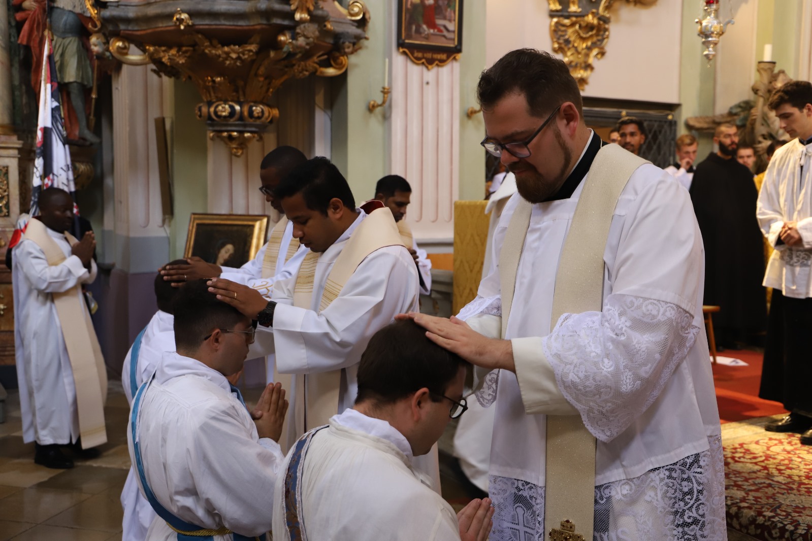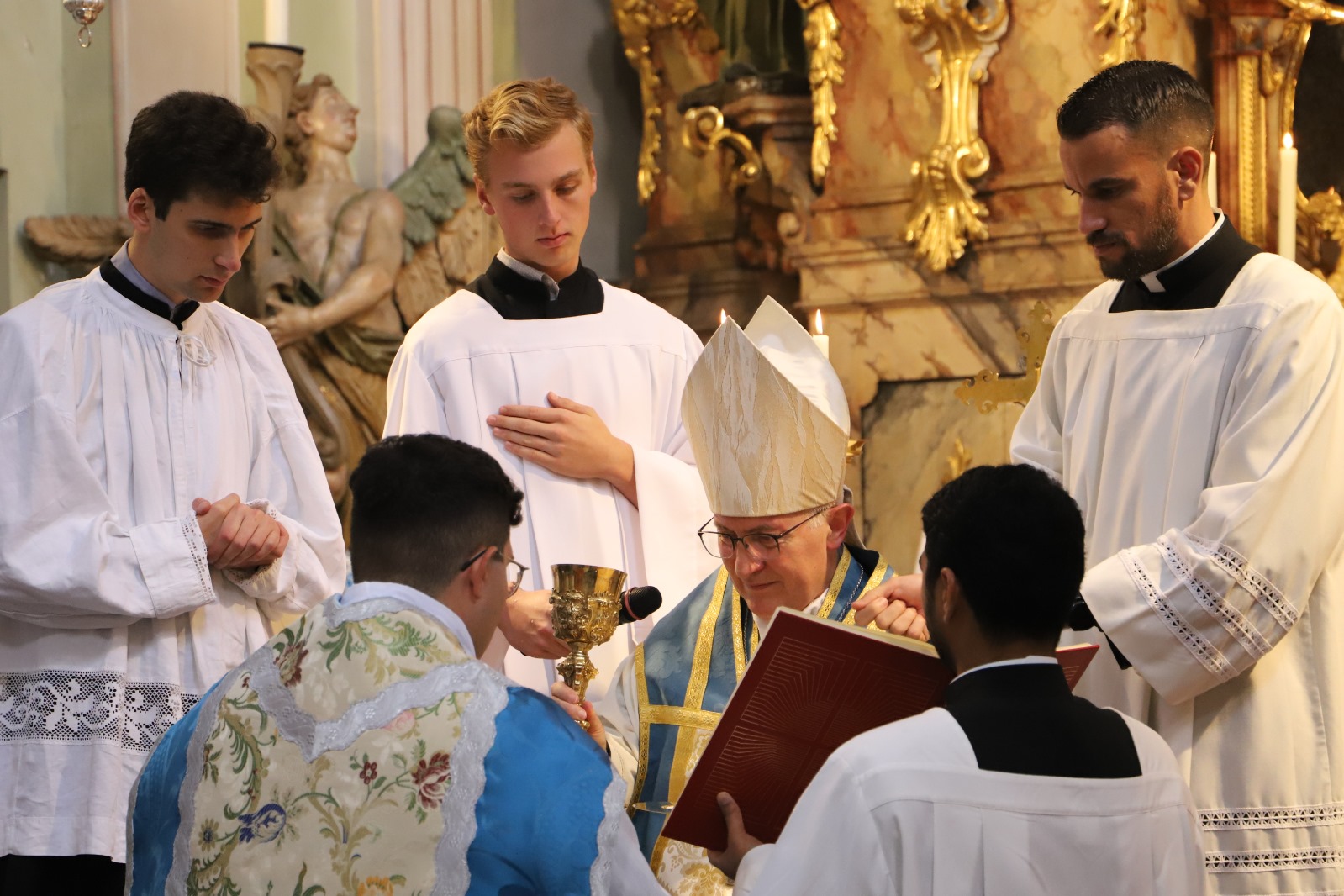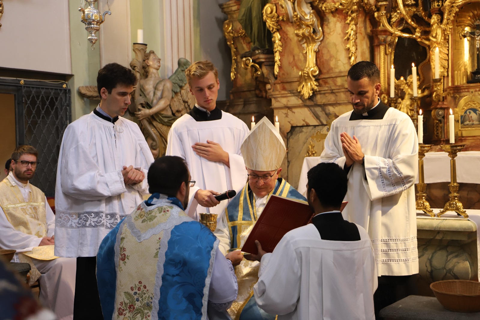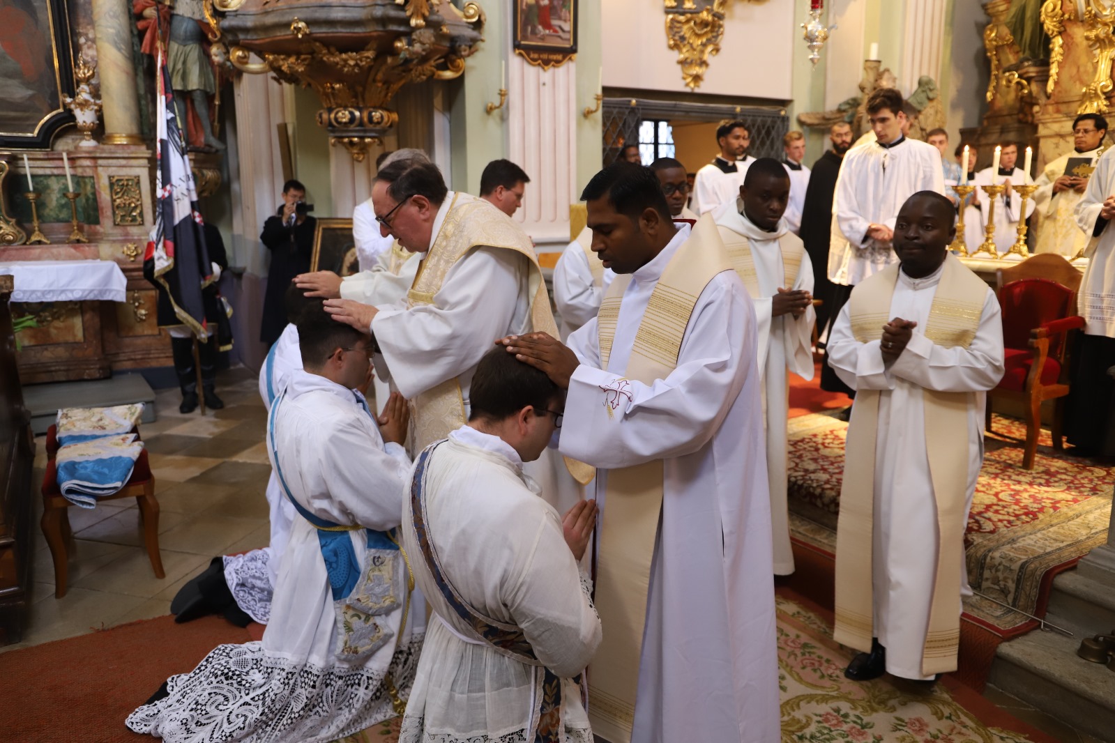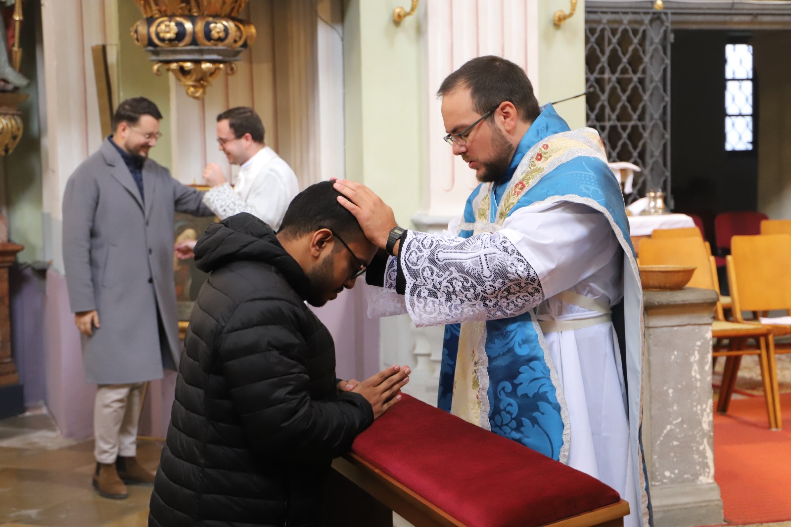 Die Gemeinschaft der Botschafter der Immaculata (Messengers of Mary Immaculate Conception) mit ihrem Generalsuperior, Fr. Joseph Thannikott kann sich sehr über drei Neupriester in ihrer Gemeinschaft freuen. Gemeinsam mit der Seminargemeinschaft des Leopoldinums, in der P. Stephan, P. Andrian und P. Zacharias für einige Jahre ihre Ausbildung und Formation erhielten, Seminaristen aus den drei Priesterseminaren in Wien und etwa 200 Gläubigen feierten wir in der Wallfahrtskirche Maria Jeutendorf die Priesterweihe. Besonders freuten wir uns, dass der Generalvikar für die katholischen Ostkirchen, Dr. Yuriy Kolasa, mit uns feierte.