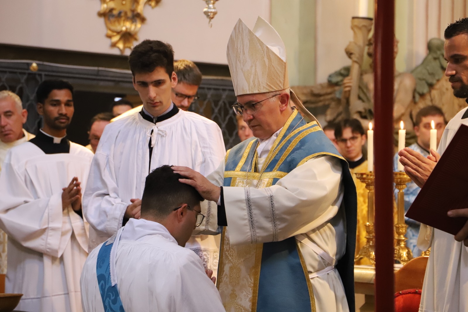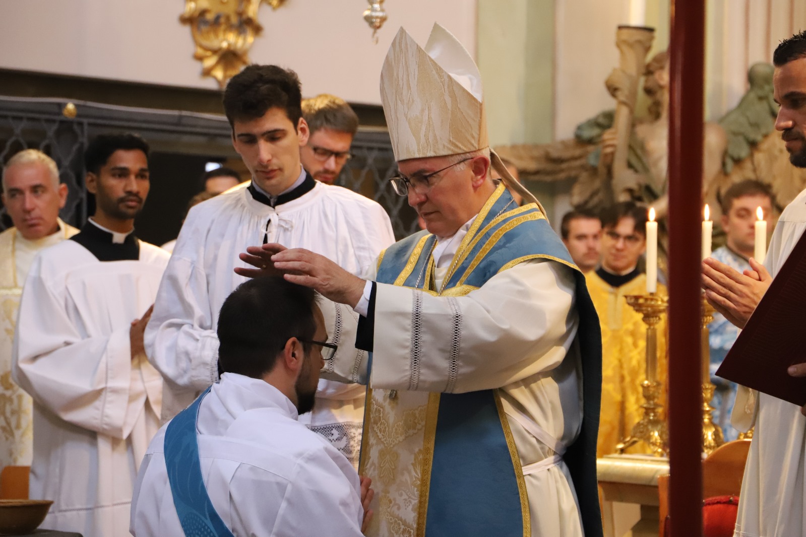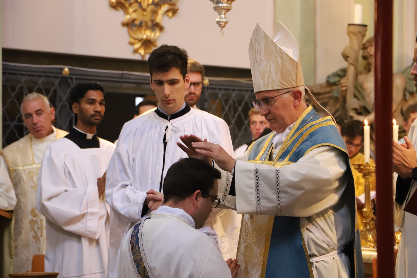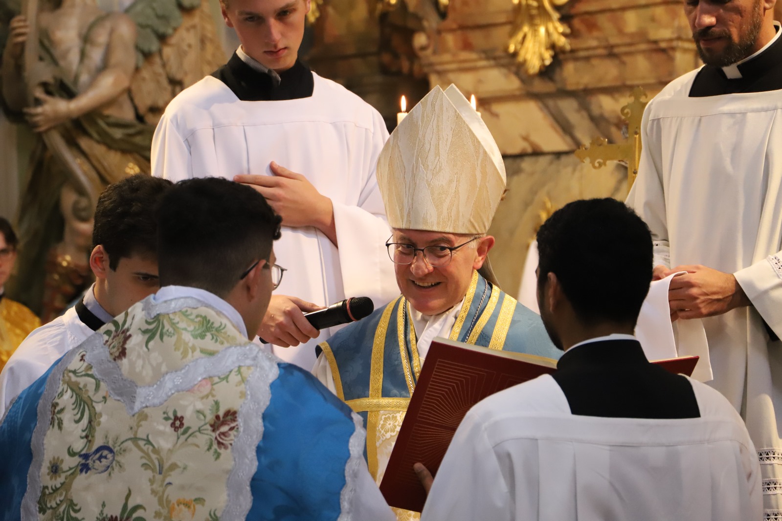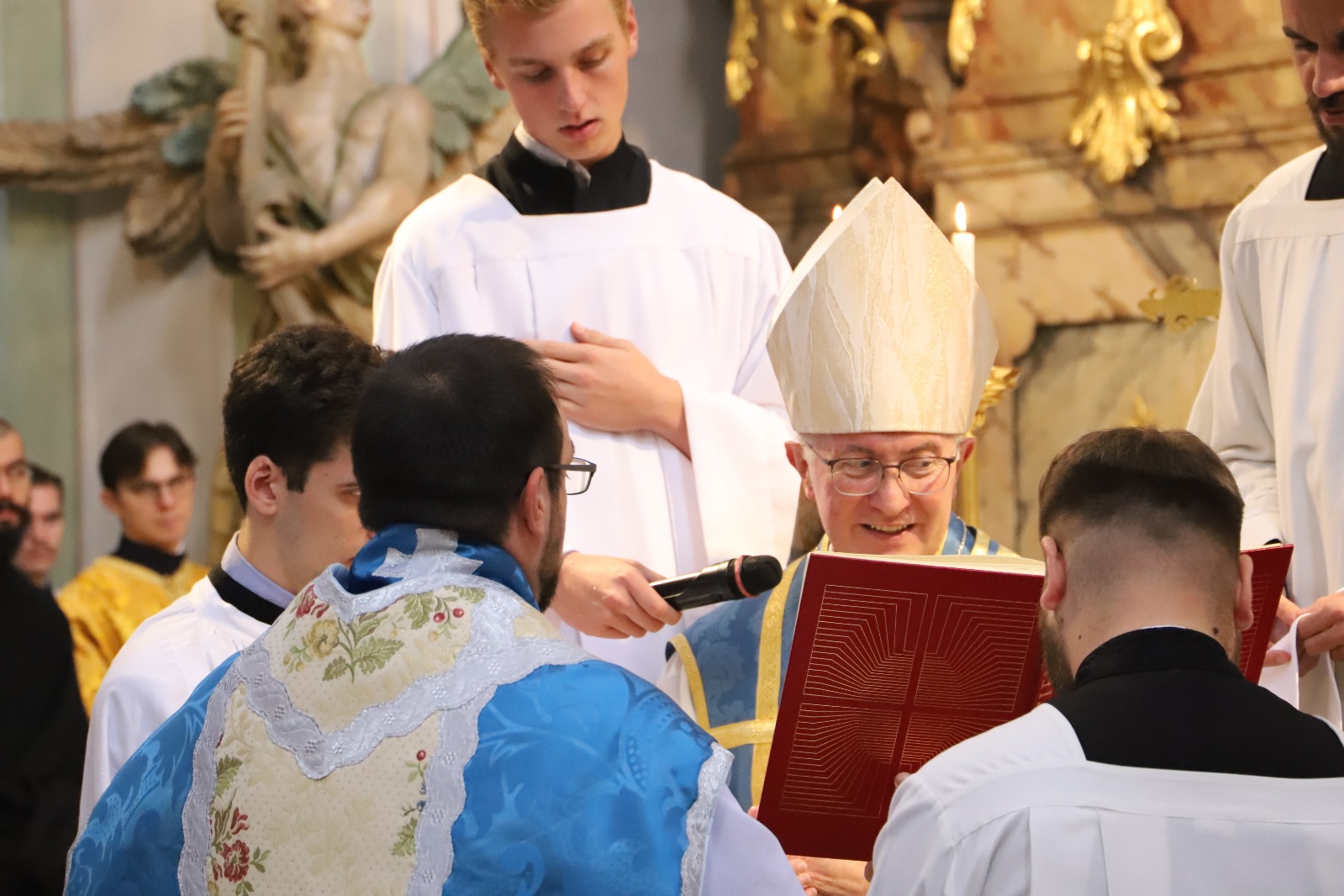 Die Gemeinschaft der Botschafter der Immaculata (Messengers of Mary Immaculate Conception) mit ihrem Generalsuperior, Fr. Joseph Thannikott kann sich sehr über drei Neupriester in ihrer Gemeinschaft freuen. Gemeinsam mit der Seminargemeinschaft des Leopoldinums, in der P. Stephan, P. Andrian und P. Zacharias für einige Jahre ihre Ausbildung und Formation erhielten, Seminaristen aus den drei Priesterseminaren in Wien und etwa 200 Gläubigen feierten wir in der Wallfahrtskirche Maria Jeutendorf die Priesterweihe. Besonders freuten wir uns, dass der Generalvikar für die katholischen Ostkirchen, Dr. Yuriy Kolasa, mit uns feierte.