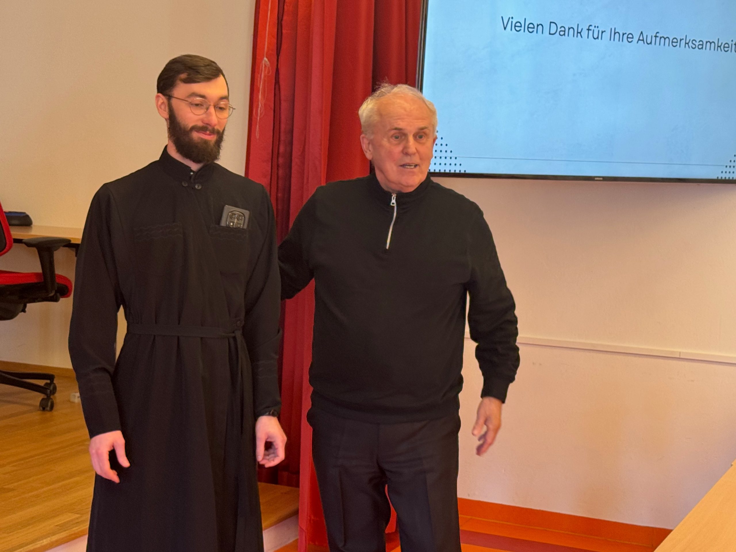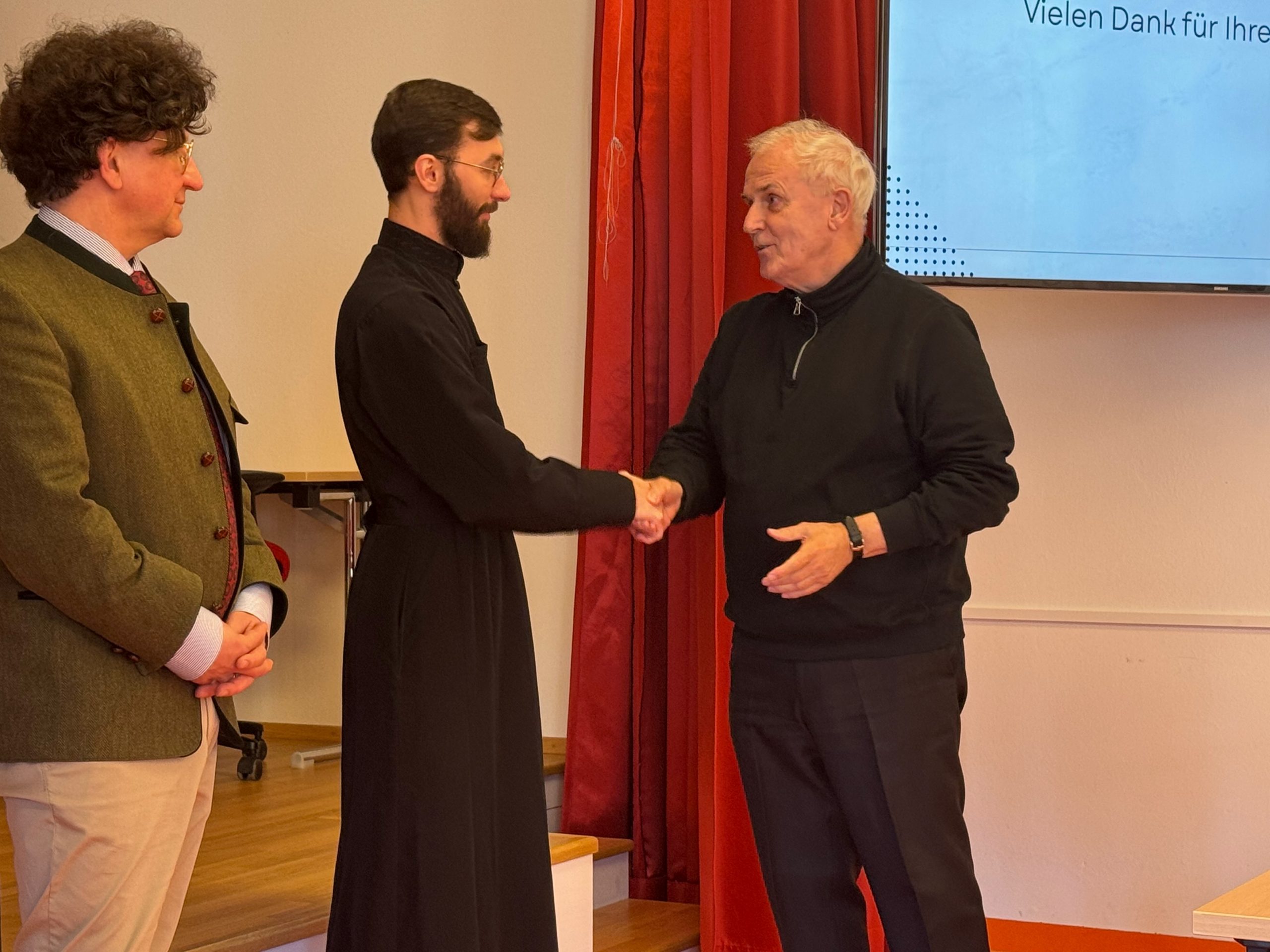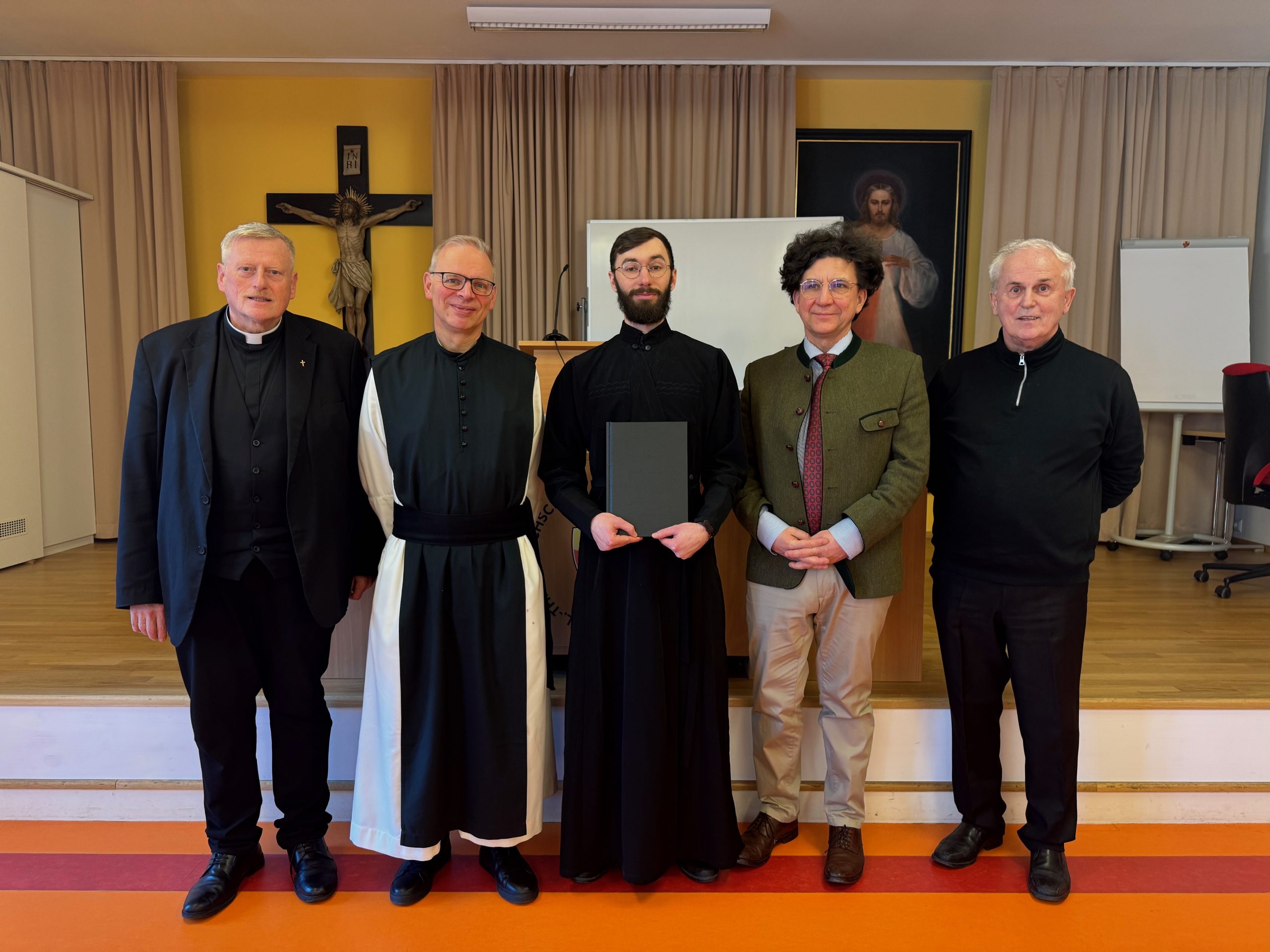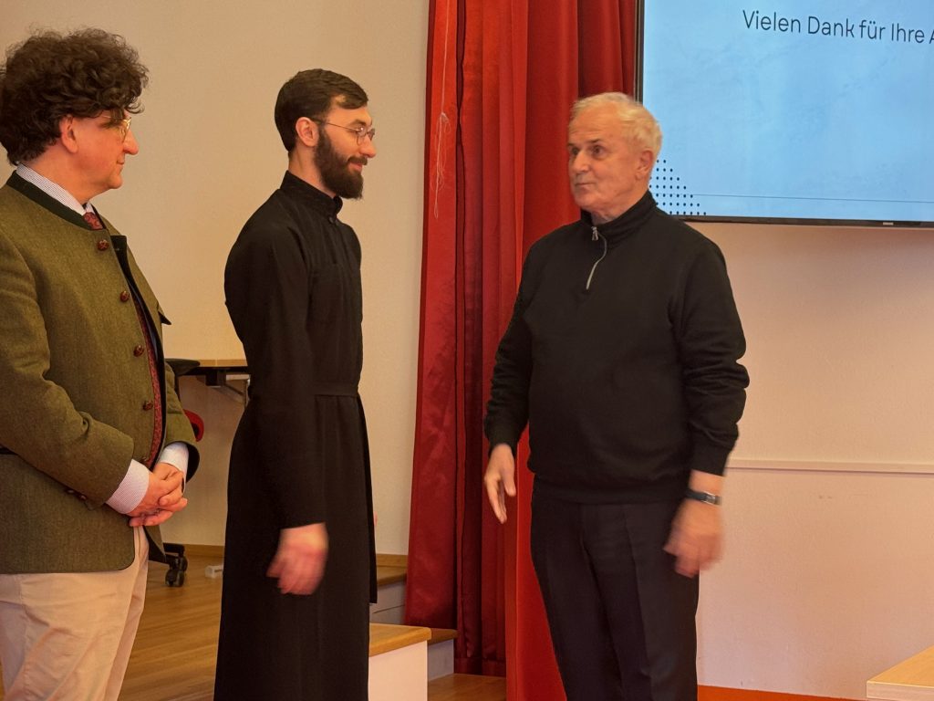 Mit der Defensio hat unser ukrainischer Seminarist, Oleh Shahala, nun sein Studium der Fachtheologie erfolgreich abgeschlossen. Wir gratulieren ihm herzlich zur ausgezeichneten Präsentation seiner Magisterarbeit über die Seelsorge der ukrainisch-katholischen Kirche unter dem Eindruck der Kriegswirren des russischen Angriffskrieges.