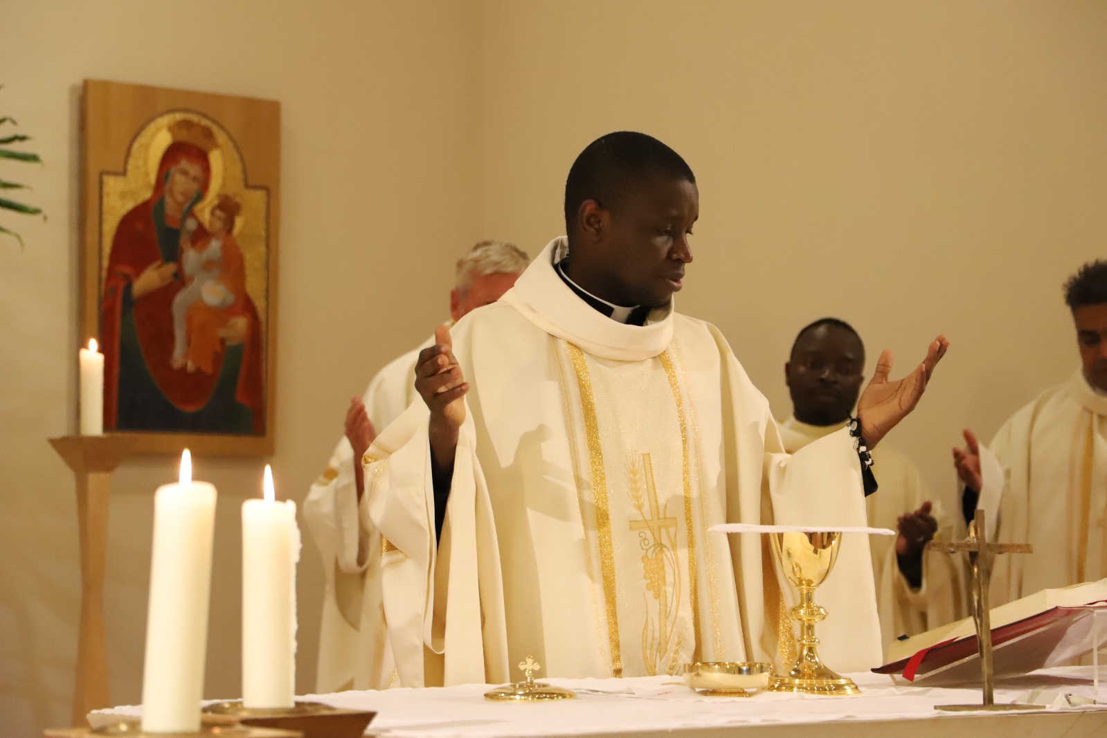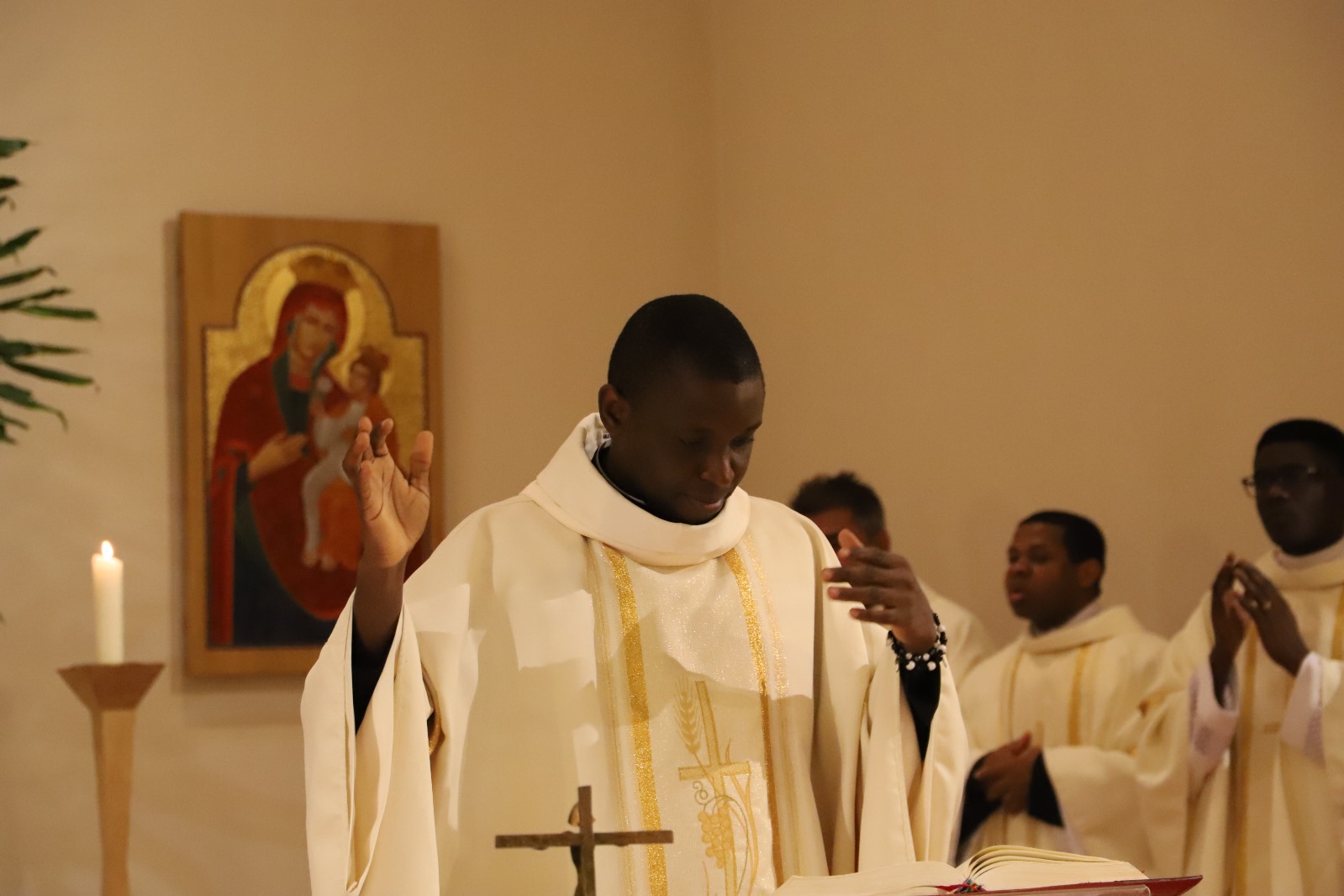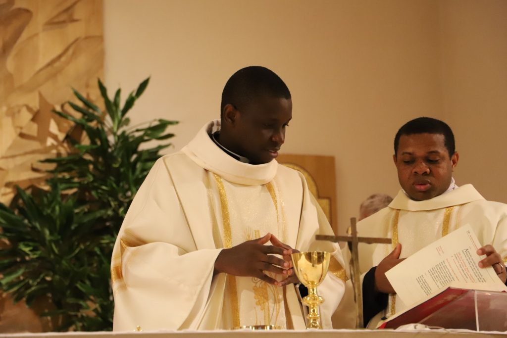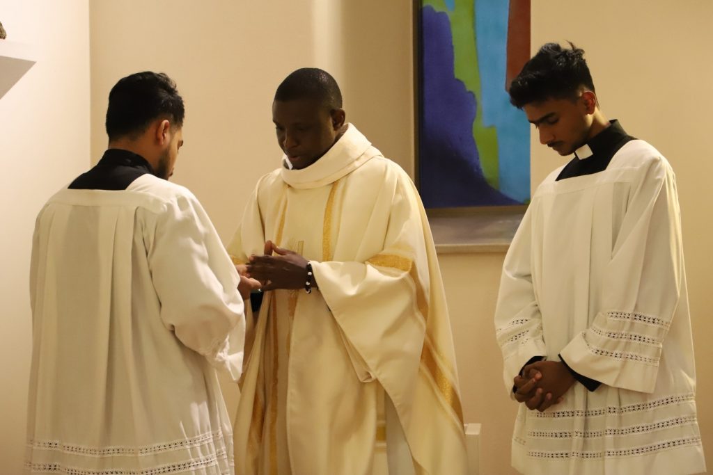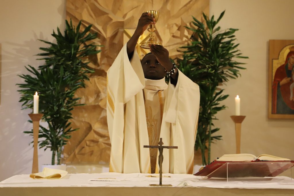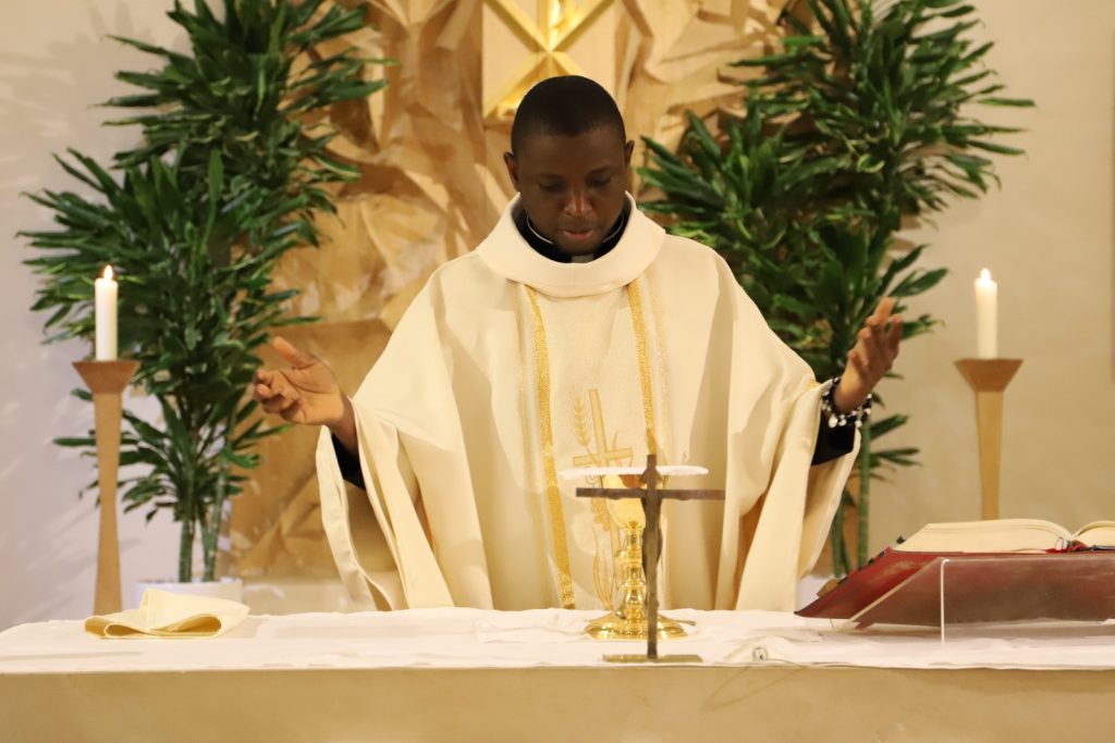 Anlässlich seines 7. Priesterweihejubiläums feierte unser Fr. Apeh aus Nigeria – mit einigen Tagen Verspätung – mit uns in der Katharinenkapelle den Abendgottesdienst. Die Predigt hielt Vizedirektor P. Laurentius.