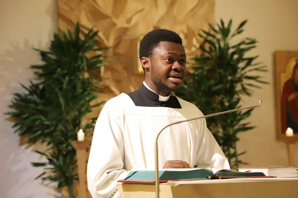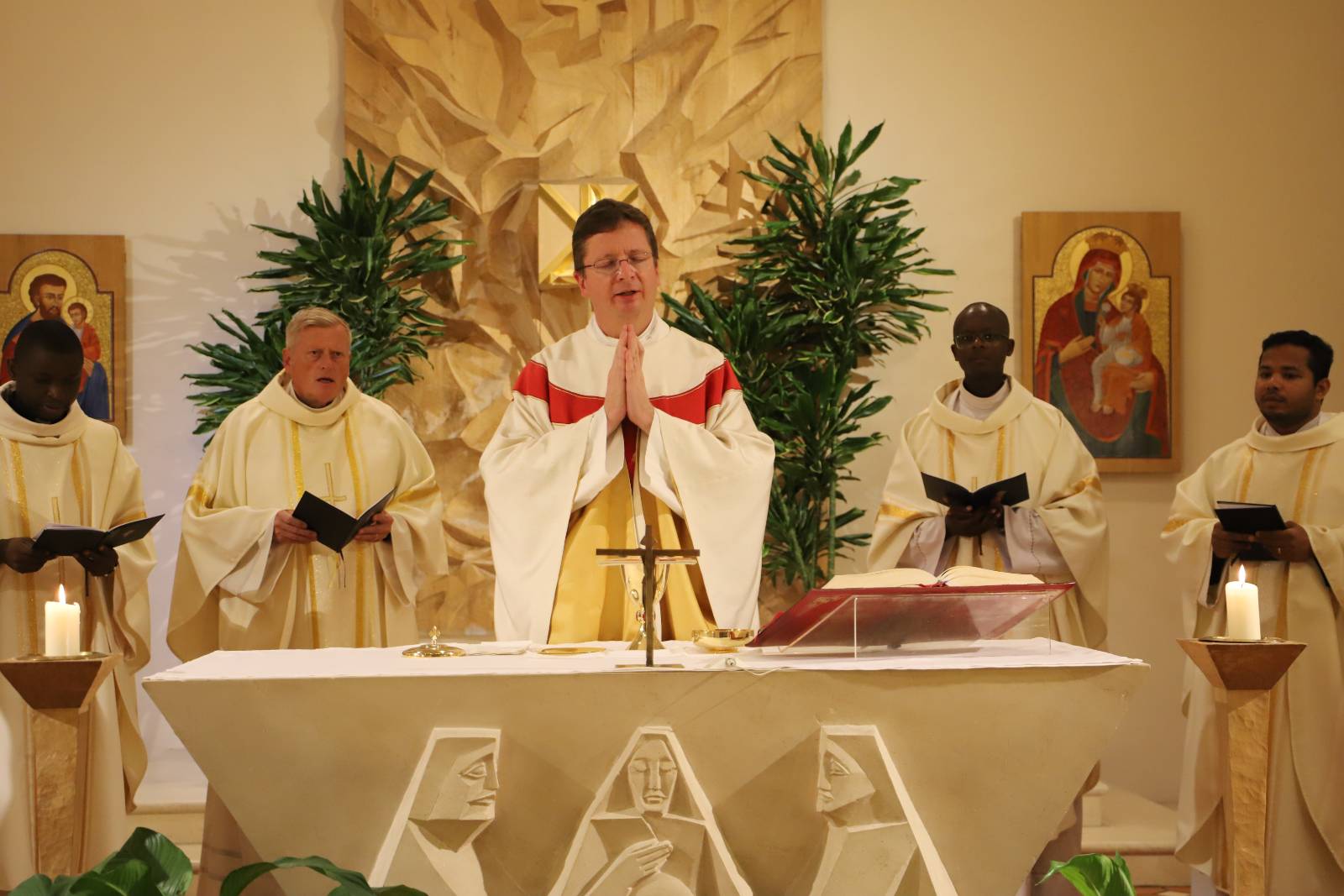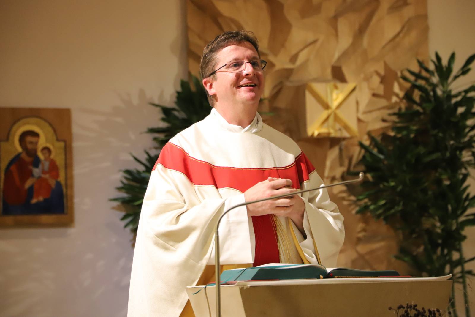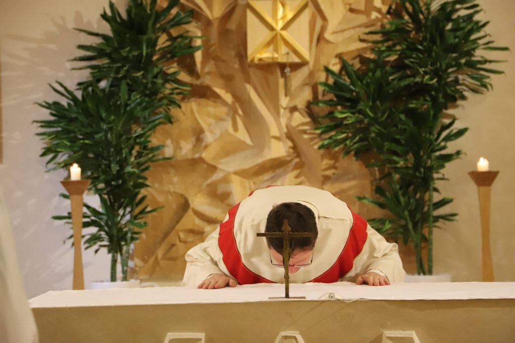Sein 4. Priesterweihejubiläum beging unser Vizedirektor, P. Laurentius, mit einer festlichen Hl. Messe in unserer Seminarkirche, der Katharinenkapelle. Bei der Predigt erklärte er uns die Symbolik seines Messgewandes, das ein Herz-Jesu-Gewand mit der Assoziation des Bildes des Barmherzigen Jesus der Sr. Faustina ist.