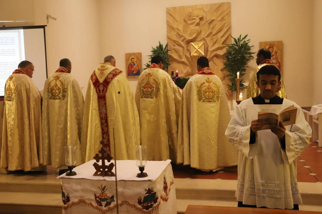 So freuen wir uns immer, wenn das heilige Messopfer auch in einem anderen Ritus in unserer Kapelle gefeiert wird. Diesmal feierten wir »Holy Qurbana«, wie die hl. Messe im syromalabarischen Ritus genannt wird. P. Dominic und P. Mathew aus Mischendorf, sowie Pfarrer Shinto aus Kobersdorf waren zu Gast, Fr. Jijo, Fr. Francis Xavier, P. Paulus und Dir. Leitner aus unserem Seminar konzelebrierten ebenso.