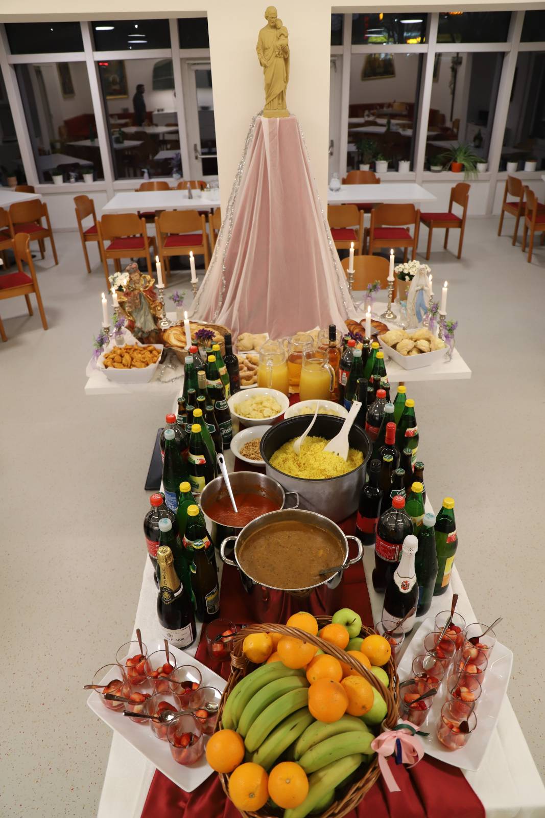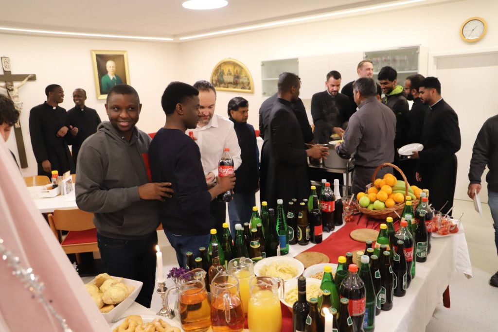 Wir Leopoldiner verstehen zu feiern. In der Kapelle bei den Gottesdiensten, ebenso nationenübergreifend danach. Das Hochfest des Hl. Josef war ein willkommener Anlass dazu. Nach der feierlich gesungenen Vesper kamen wir zum Abendessen in unseren stilvoll geschmückten Speisesaal.