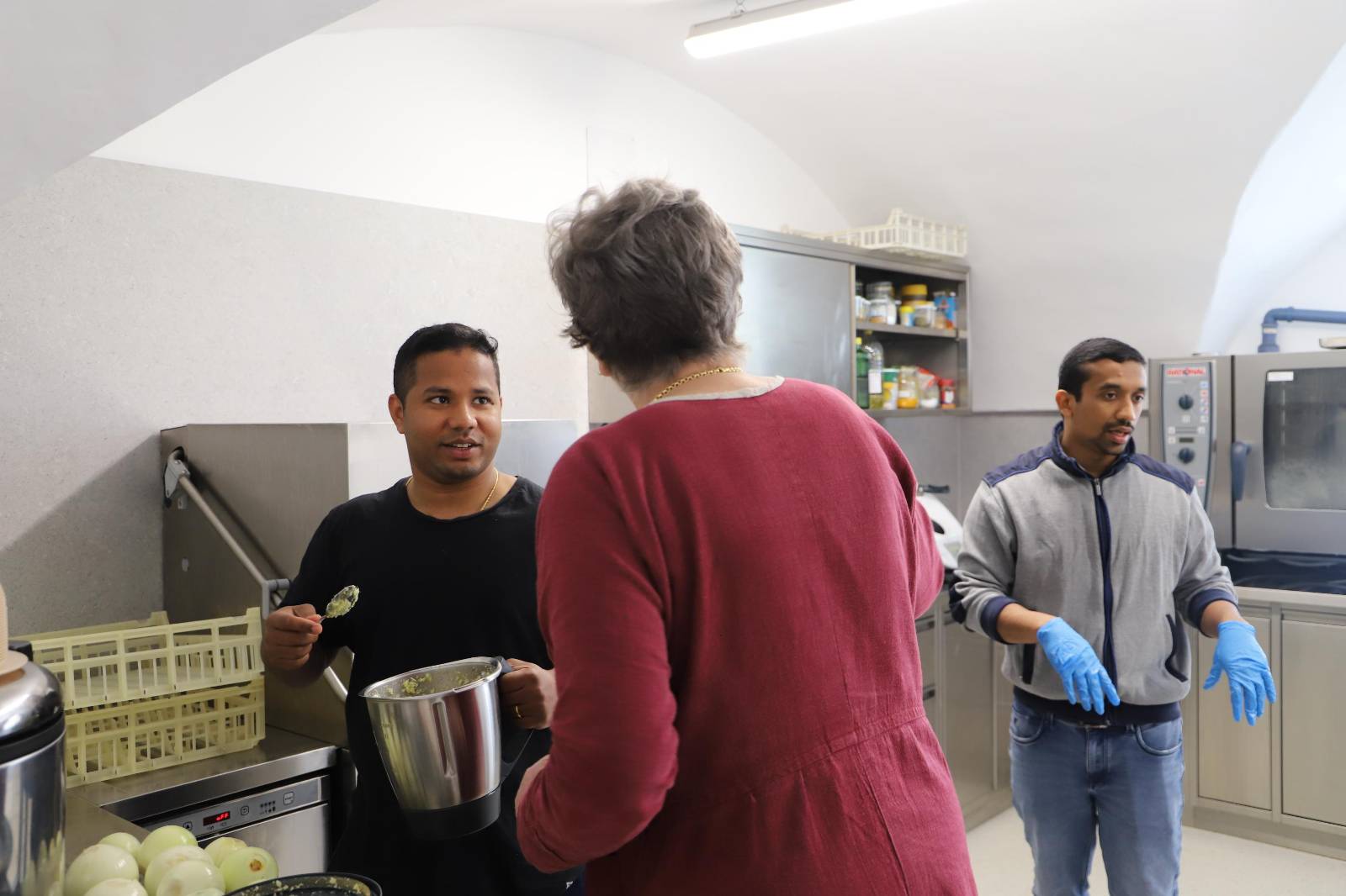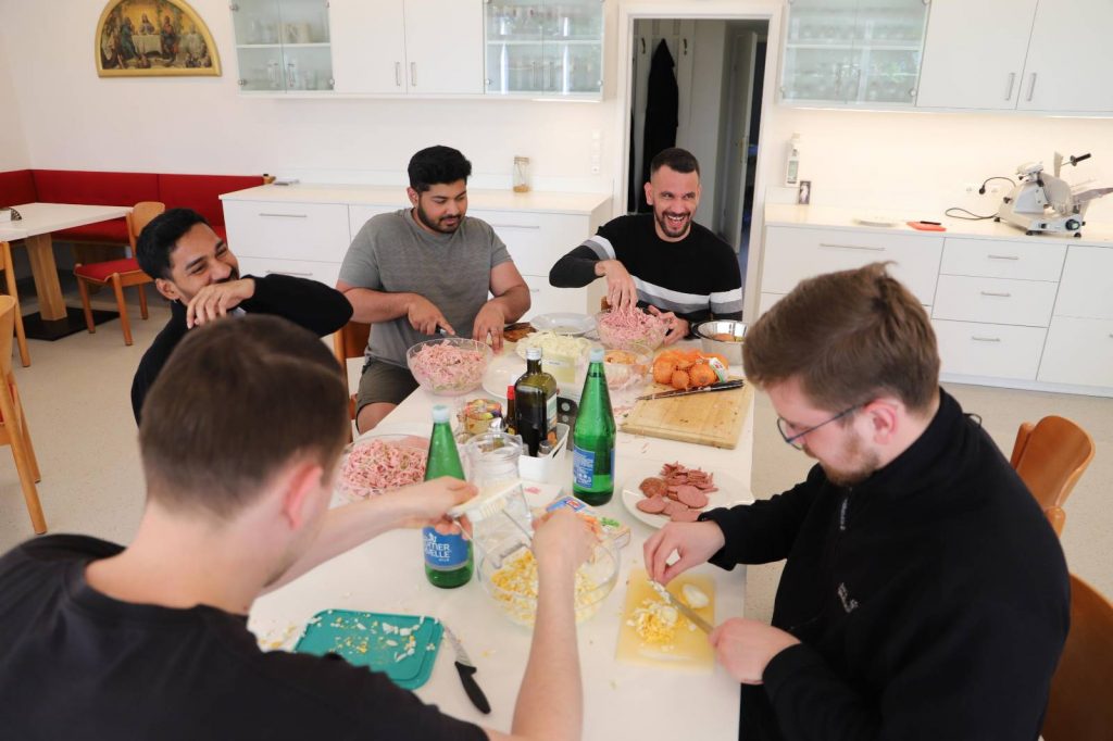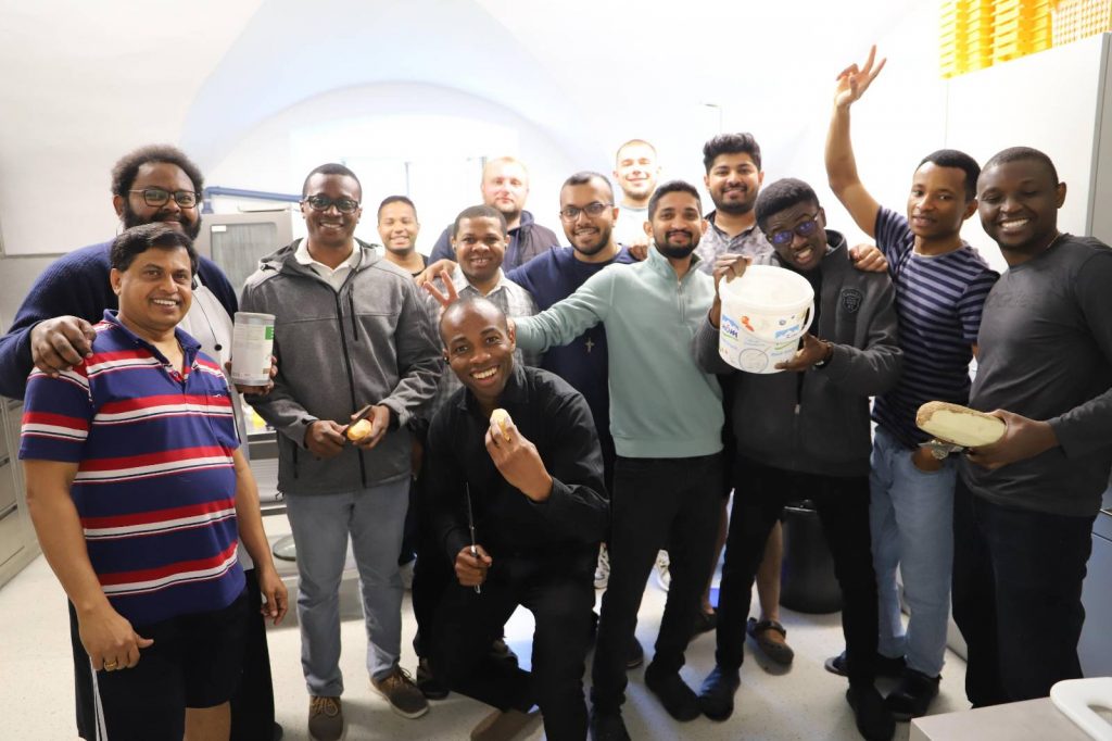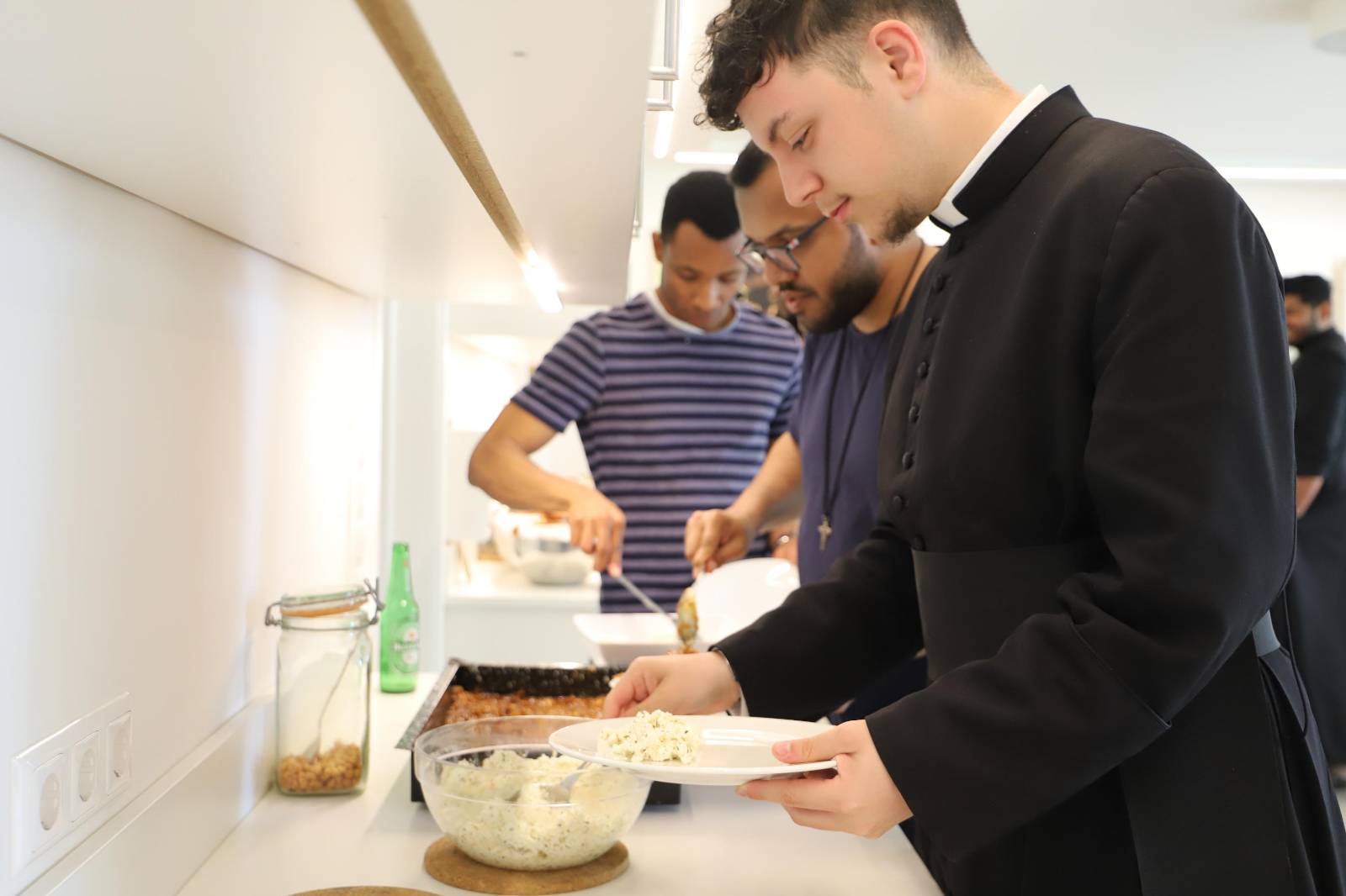 Das Sprichwort »Viele Köche verderben den Brei« wurde an diesem Samstag in unserem Priesterseminar reichlich widerlegt! Nach dem Frühstück begannen die Kochteams aus den verschiedenen Nationen, ihre Köstlichkeiten zuzubereiten. Spezialitäten aus Äthiopien und anderen afrikanischen Ländern, ein köstliches Chicken-Biryani, von den Indern zubereitet, ein ukrainischer Borschtsch und vieles anderes mehr gab es zum Mittagessen. Zum Abendessen kamen dann die Sankt Pöltner mit Schnitzeln und Petersilerdäpfeln, Salzburg mit Wurstsalat, Belarus mit einem köstlichen Ei-Salat und Italien mit einer Pasta mit Pistaziensoße und weitere Leckereien auf den Tisch.