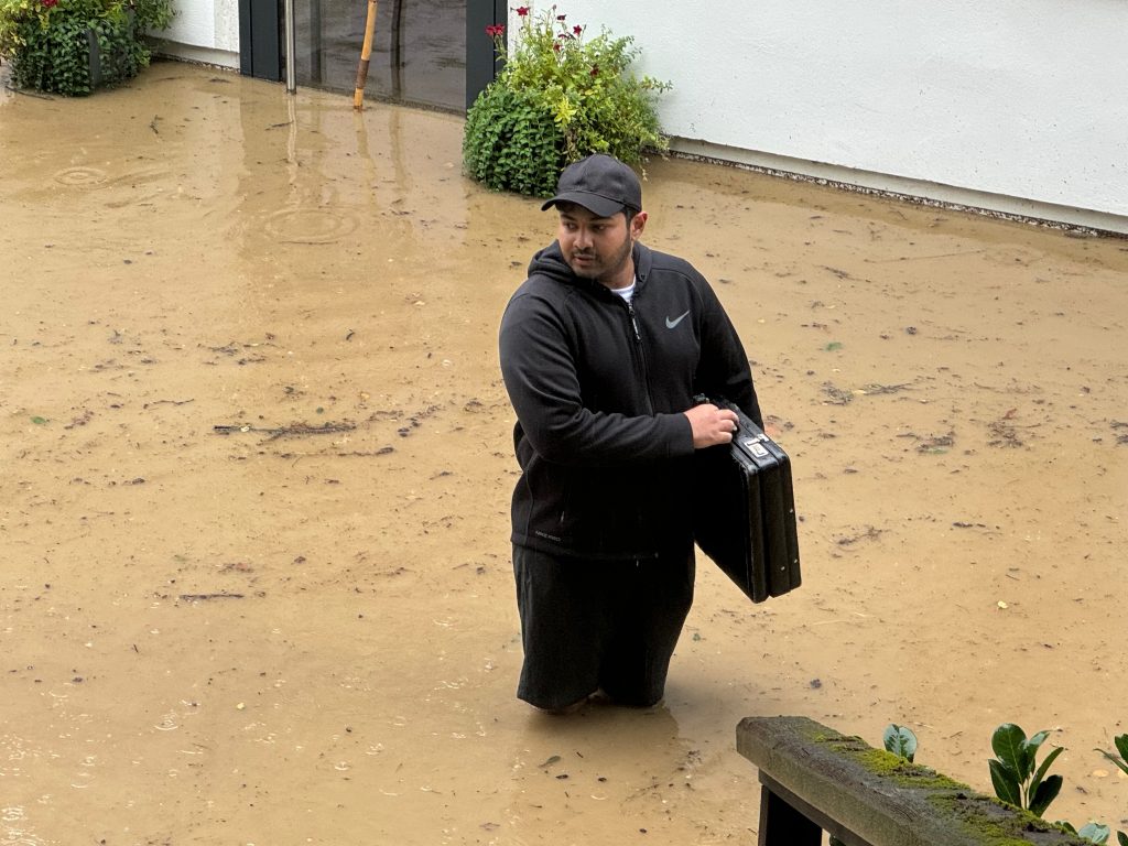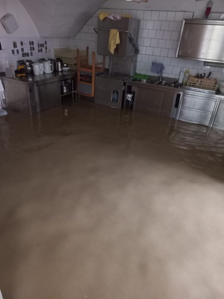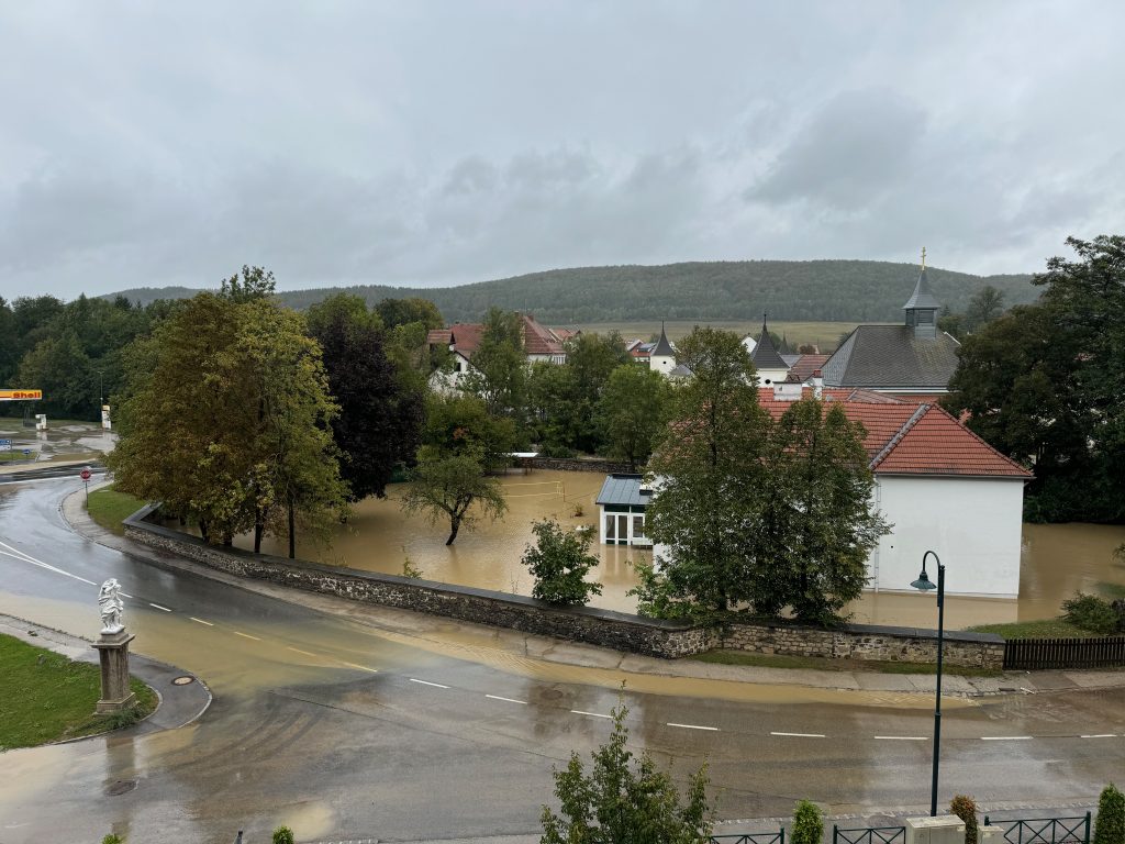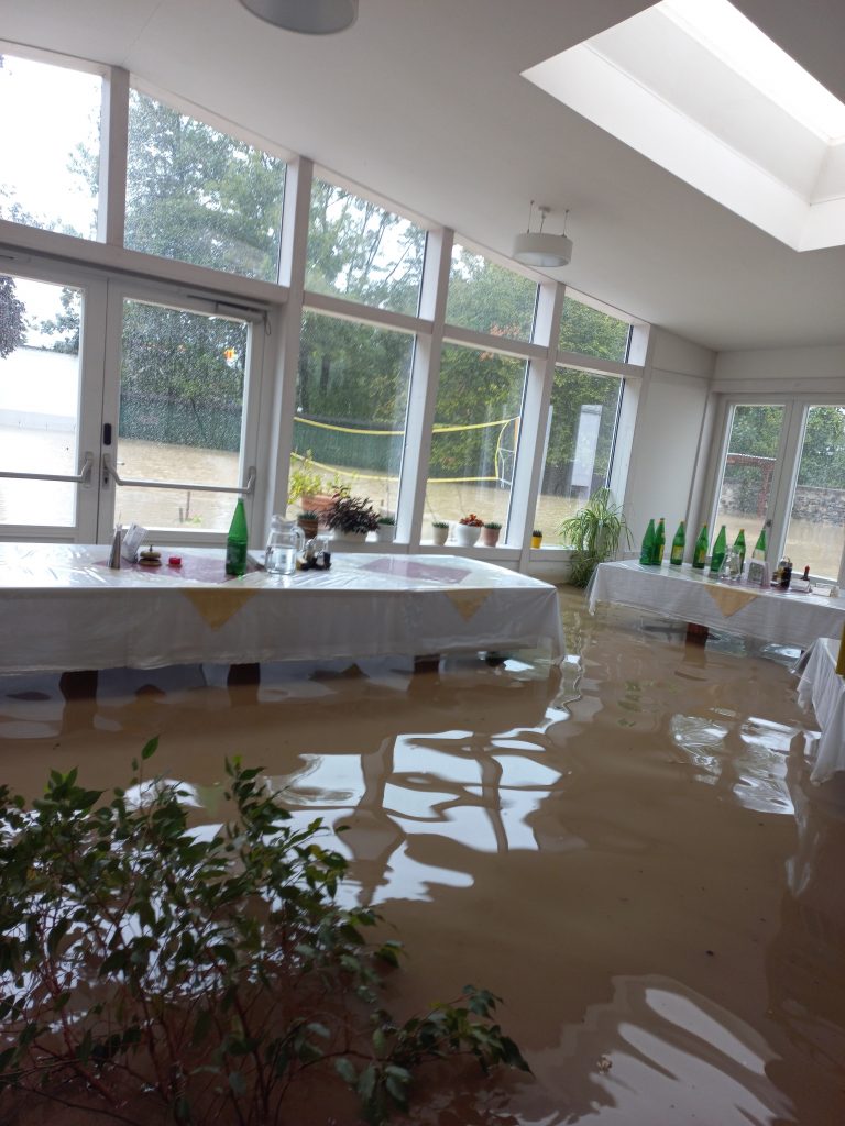 Die Hochwasserkatastrophe hat auch uns nicht verschont. Als Direktor Leitner am frühen Morgen des 15. Septembers aus dem Fenster blickte, musste er mit Erschrecken feststellen, dass der Parkplatz vor dem Hauptgebäude des Leopoldinums bereits einige Zentimeter überflutet war. Das Wasser stieg rasch an, drang über den Speisesaal in das Erdgeschoss des Hauptgebäudes. So wurden neben dem Keller alle Räume etwa 60cm hoch überflutet.
