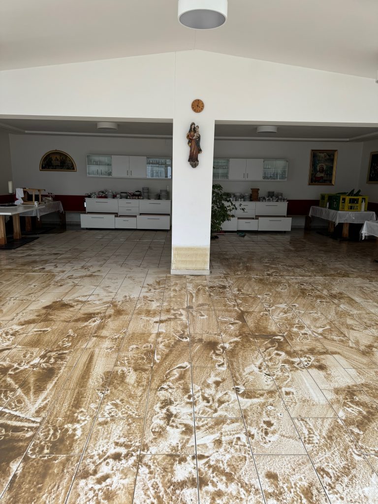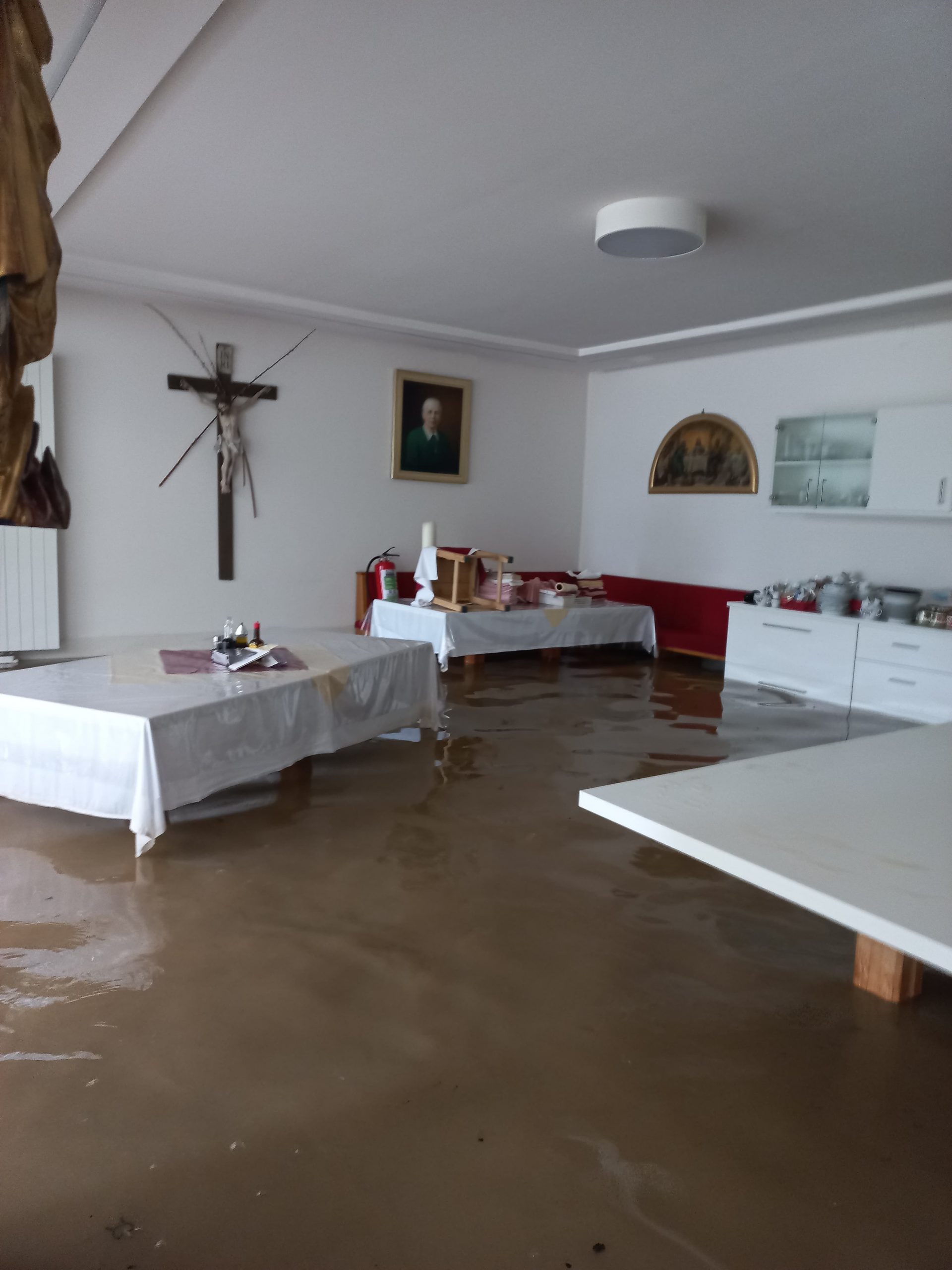 Dem raschen Eingreifen der Seminaristen, die beinahe übermenschliches geleistet haben, ist es verdanken, dass alle beweglichen Teile (Stühle, Bücher, Klavier, etc.) gerettet wurden. Doch der Schaden ist beträchtlich. Alle Böden im Erdgeschoss sind zerstört, die Einrichtung des Speisesaals und des Frühstückszimmers ebenso wie die diversen Geräte in der Küche. Sämtliche Kühl- und Gefriergeräte in der Speisekammer sowie die Vorräte sind ebenso unwiederbringlich zerstört.