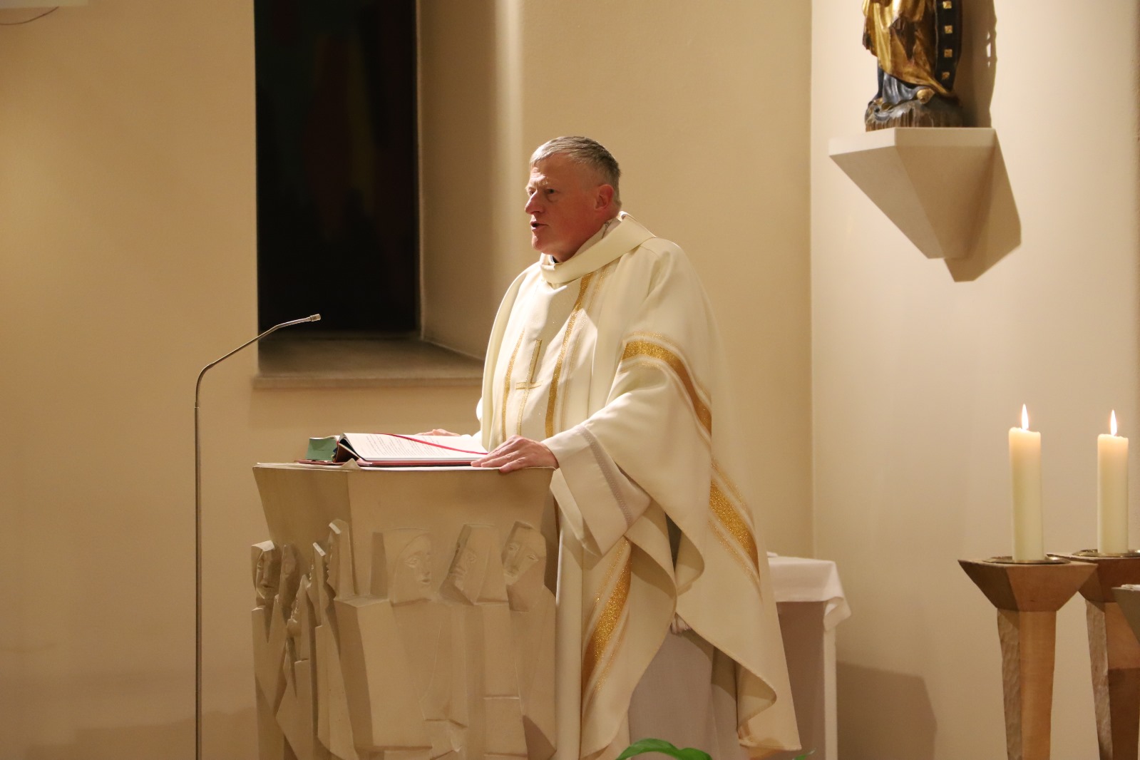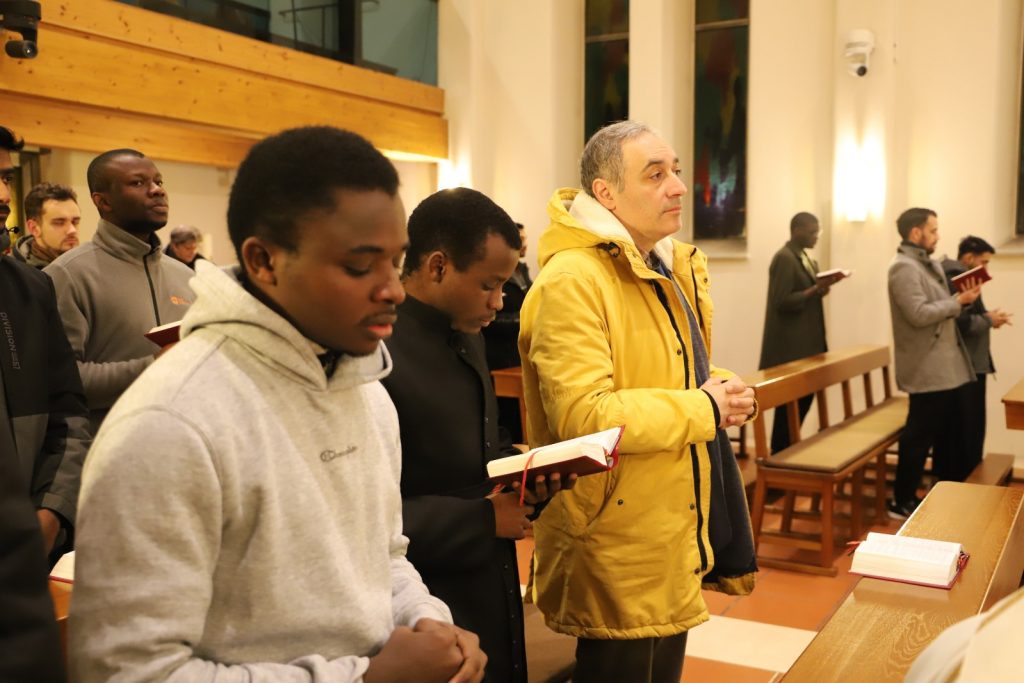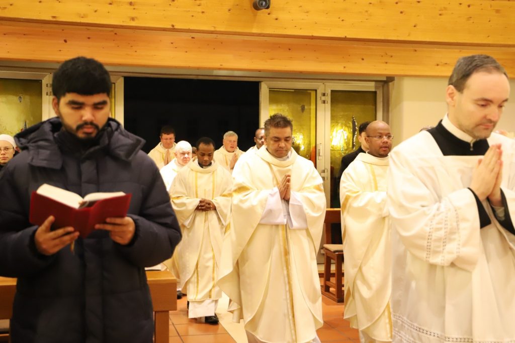 Mit großer Freude konnten wir unseren ehemaligen Seminaristen, Daniel Schrempp, der zur Gemeinschaft »Communio Sanctorum« gehört, im Leopoldinum willkommen heißen. Er hat mit uns in der Katharinenkapelle, in der er viele Stunden zum Gebet, vor allem zur Anbetung, verbracht hat, eine Nachprimiz gehalten und in seiner Predigt (zur Heilung der Schwiegermutter des Petrus) den Seminaristen wertvolle Hinweise für den Umgang mit Schwierigkeiten mitgegeben. Vor allem die Frage, die ihm ein Exerzitienprediger stellte, sollte uns allen im Gedächtnis bleiben: »Liebst du Gott wegen der guten Dinge, die du erlebt hast, oder liebst du Gott, einfach weil er Gott ist?«