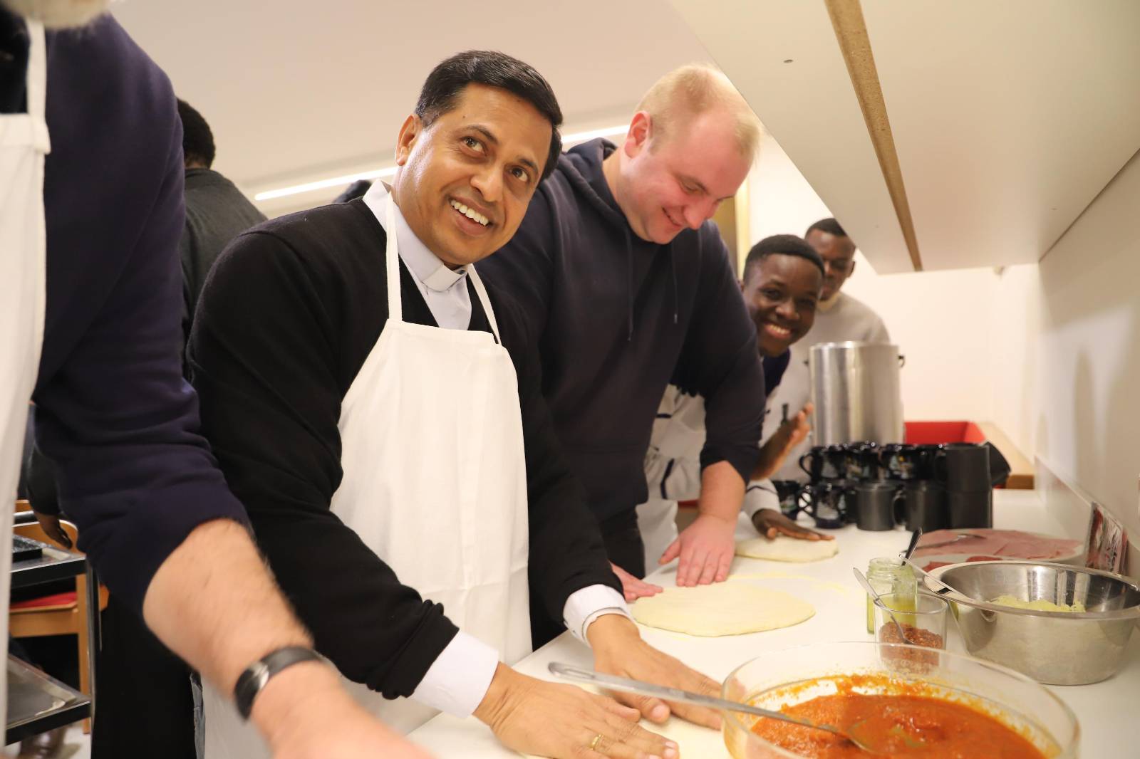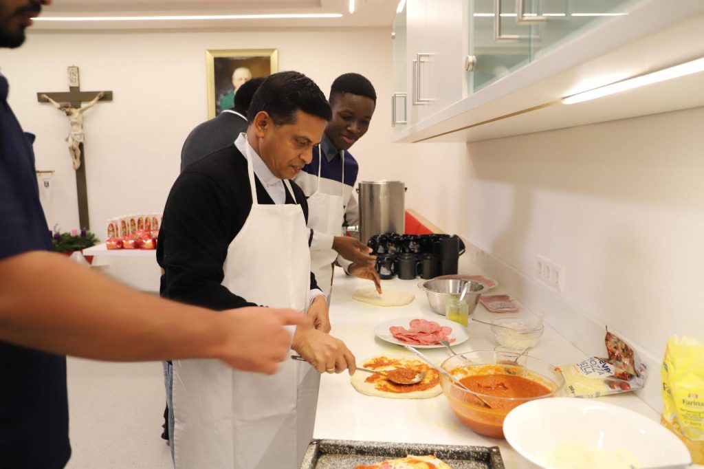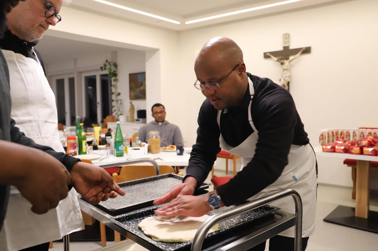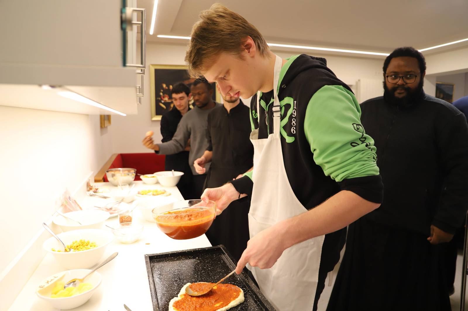 Manche Jahre trat der Hl. Nikolaus auf, um aus seinem Goldenen Buch über die Leopoldiner Gutes und (leicht) Kritisches zu sagen, manchmal bereiteten die einzelnen Nationen oder Sprachgruppen Lieder und Gedichte aus ihrer Heimat vor. Doch für heuer hatten wir uns etwas Besonderes ausgedacht: Gemeinsames Pizzabacken!
