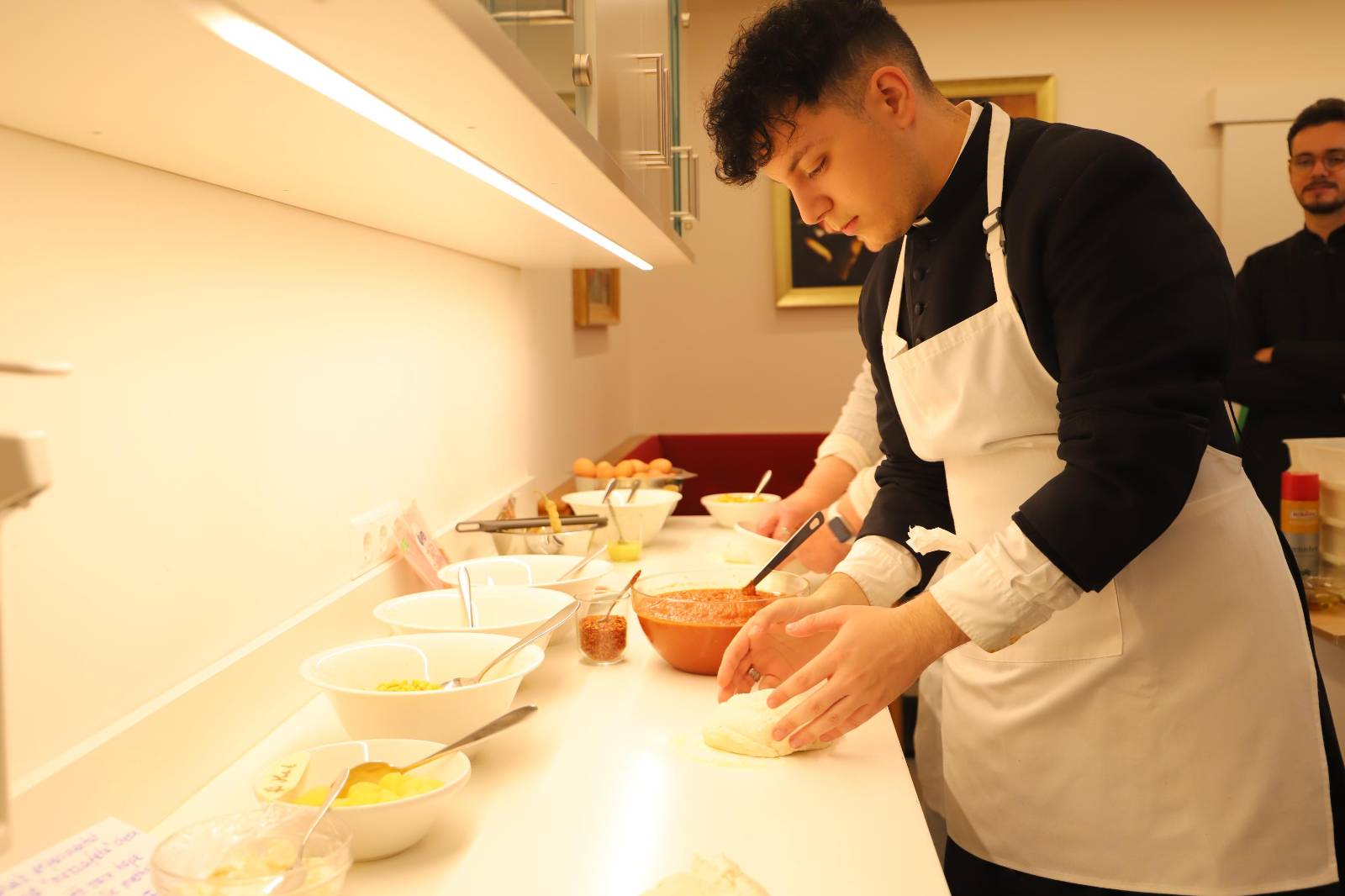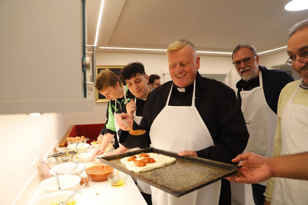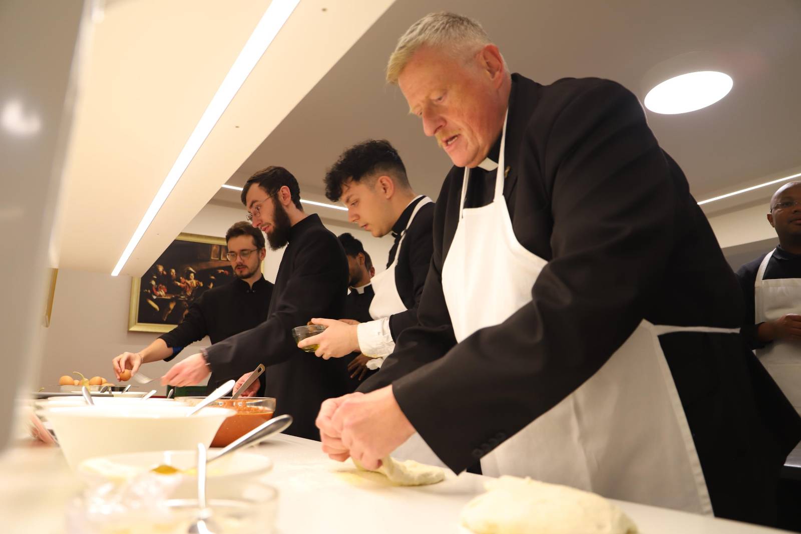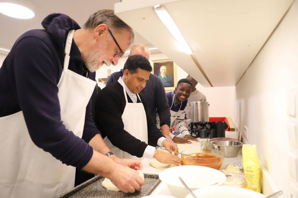 Manche Jahre trat der Hl. Nikolaus auf, um aus seinem Goldenen Buch über die Leopoldiner Gutes und (leicht) Kritisches zu sagen, manchmal bereiteten die einzelnen Nationen oder Sprachgruppen Lieder und Gedichte aus ihrer Heimat vor. Doch für heuer hatten wir uns etwas Besonderes ausgedacht: Gemeinsames Pizzabacken!