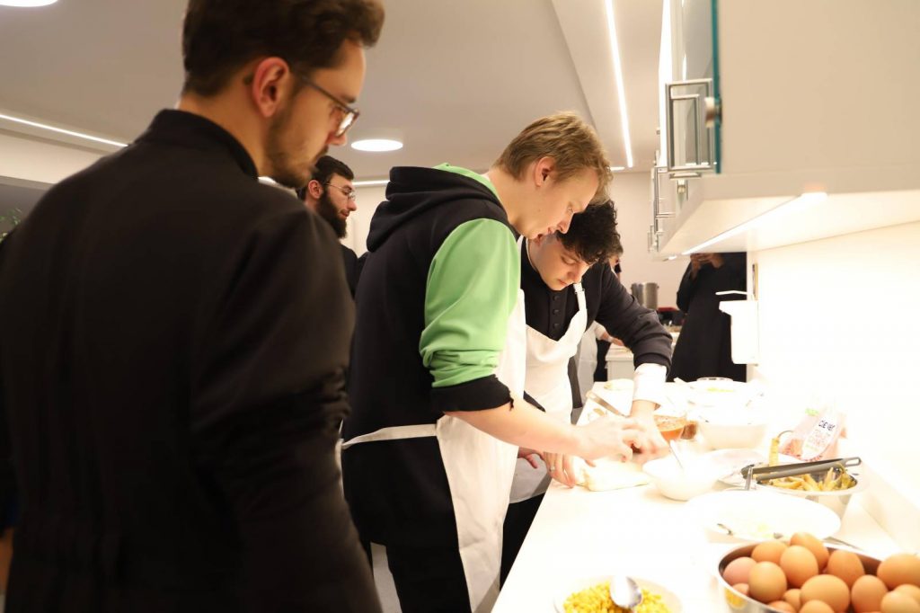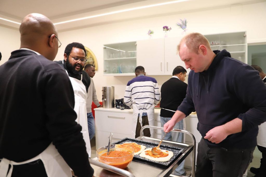 Unter der fachgerechten Anleitung von Dr. Kouba, die mit Hilfe einiger Seminaristen bereits am Nachmittag den Teig zubereitet hatte, konnte jeder seine Pizza nach eigenem Wunsch belegen. Unser Konvektomat lief auf Hochtouren, so konnten wir gemeinsam den Abend bei köstlicher Pizza, Lebkuchen und Glühwein (Dank an Uta Miriam, die uns diesen geschenkt hatte) verbringen. (Und einen Schokonikolaus und ein Nikolaussackerl gabs natürlich auch!)