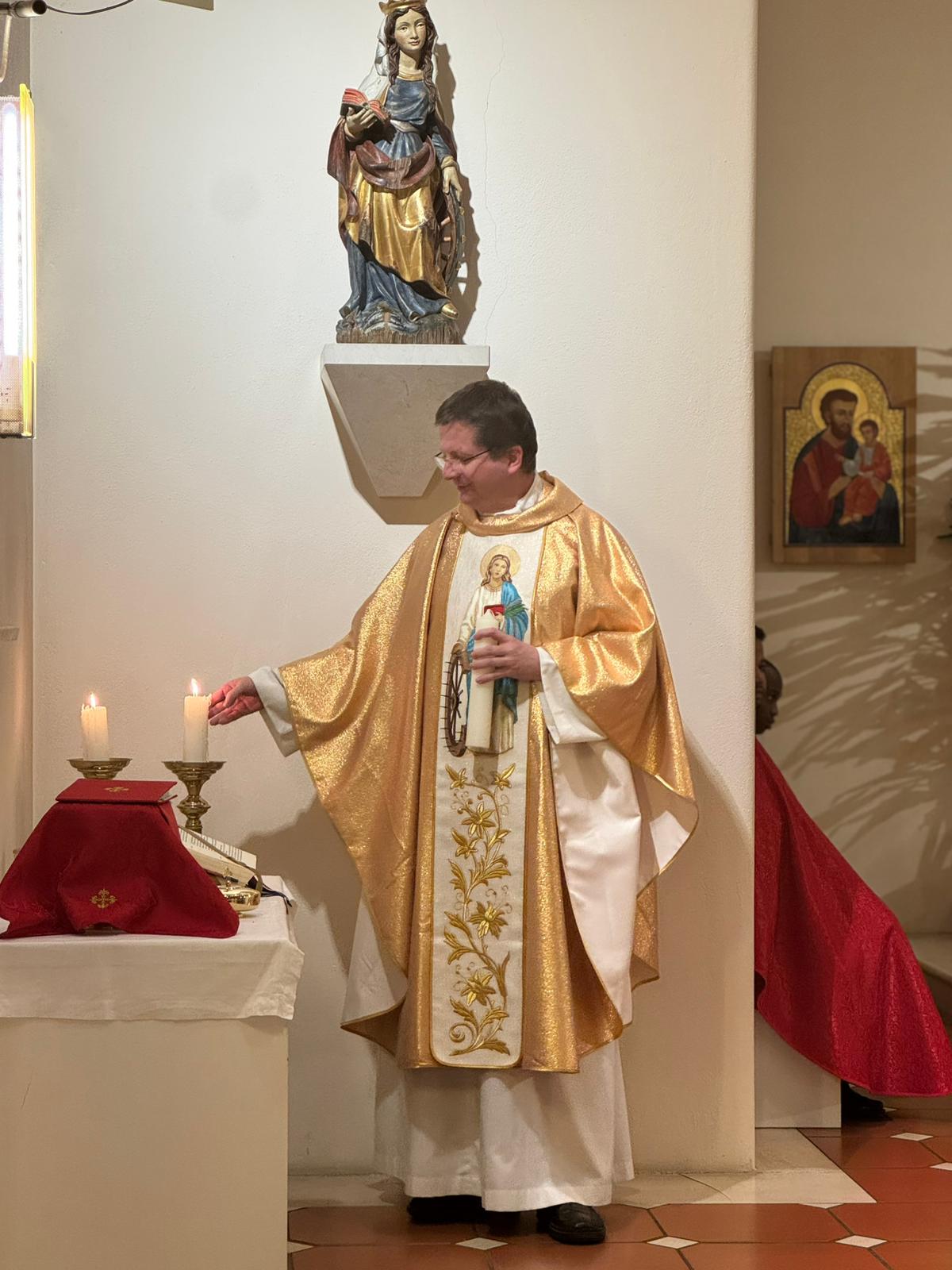 Wir heißen gerne unsere Mitstudenten und andere Gäste in unserer Kapelle zu den Gottesdiensten willkommen, denn die Seminarkirche mit den heiligen Messen und Gebetszeiten ist das im Takt des katholischen Glaubens schlagende Herz unserer Seminargemeinschaft. Dank an P. Laurentius für seine Worte in der Predigt und die festliche Zelebration unseres Patroziniums!