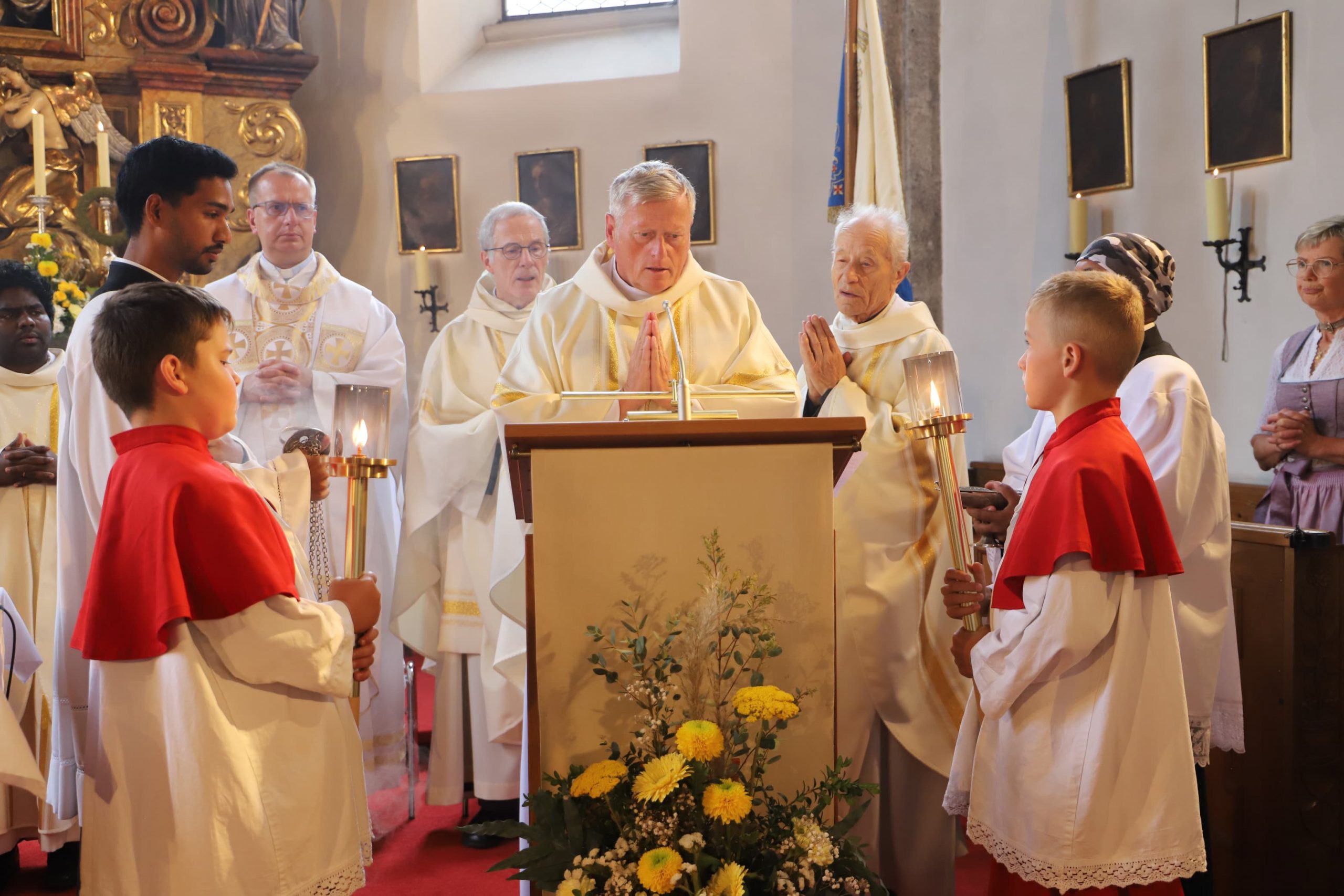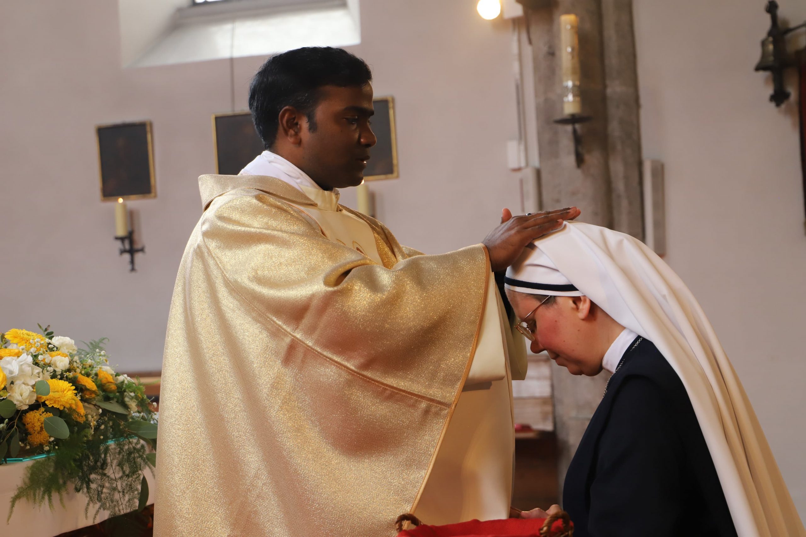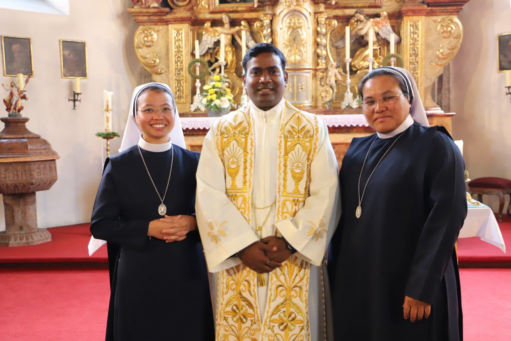 Gemeinsam mit seinen Mitbrüdern P. Thomas und P. Franz sowie zahlreichen weiteren Priestern feierte er den Sonntagsgottesdiest. Eine große Freude war, dass seine Eltern und seine beiden jüngsten Geschwister dabei sein konnten.