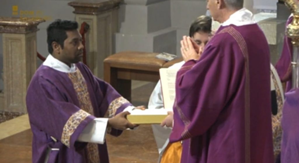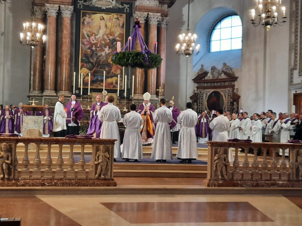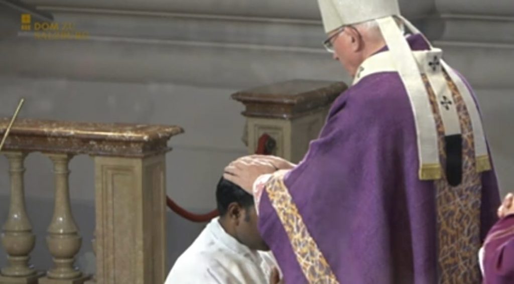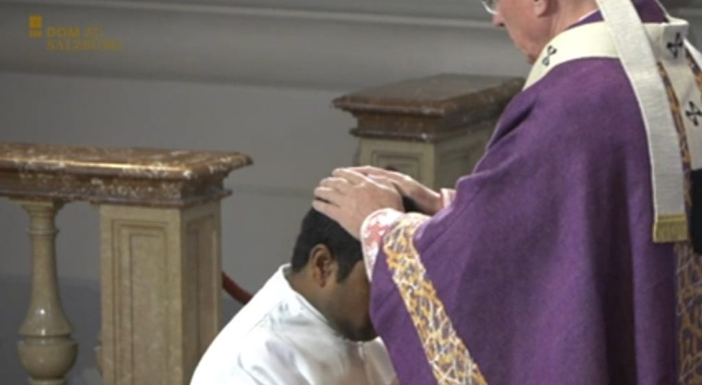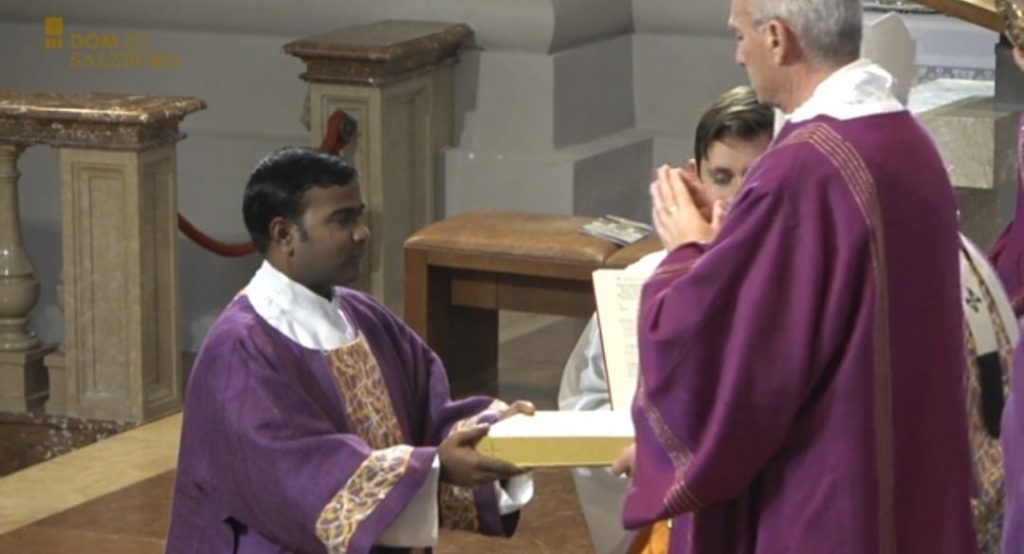 Mit James Karunakar Talluri, Thomas Kintu Kumar Nayak und Nikolaus Pirchmoser haben 3 der 6 neuen Diakone ihre Ausbildung und Formation hauptsächlich bei uns im Leopoldinum absolviert. So war unsere Freude groß, als sie gemeinsam mit Jerry Angeles, Michael Marschall und Stefan Scheichl von Erzbischof Lackner durch Handauflegung und Gebet im Salzburger Dom zu Diakonen geweiht wurden. In seiner Predigt umschrieb Erzbischof Dr. Franz Lackner die Aufgabe des Diakons als Repräsentation von Christus, dem Diener – im Gegensatz zur Repräsentation Christi des Hauptes durch den Priester. Und er verwies die Kandidaten darauf, dass auch nach der Weihe zum Priester oder gar Bischof die diakonale Aufgabe und Haltung ein Leben lang bestehen bleiben muss.