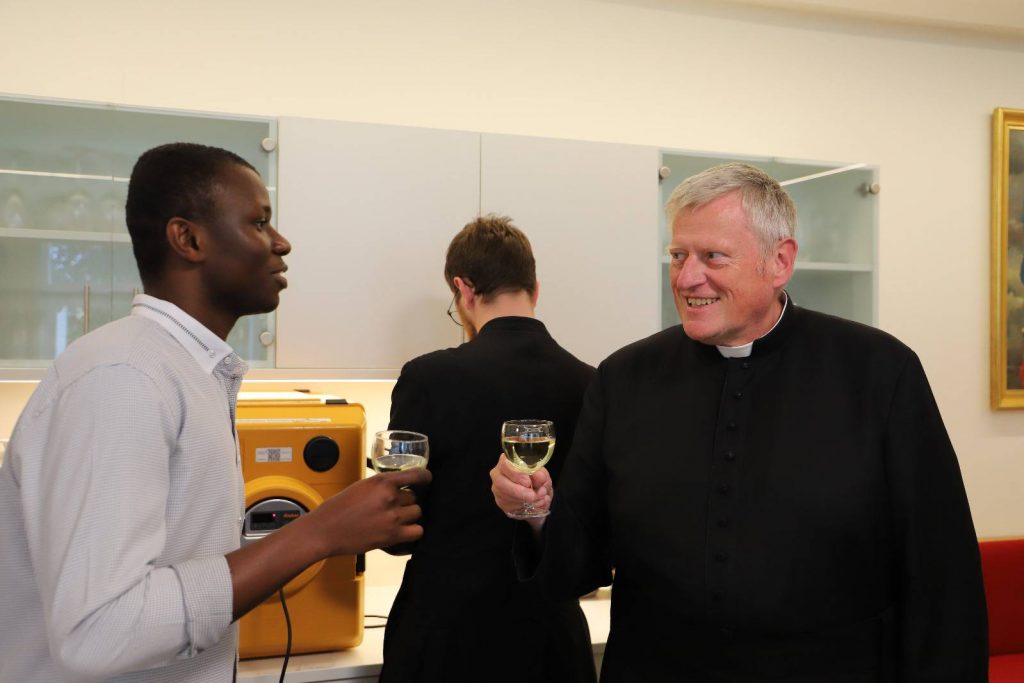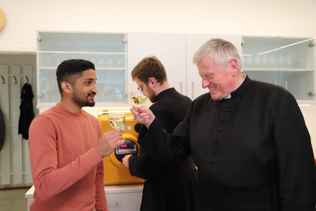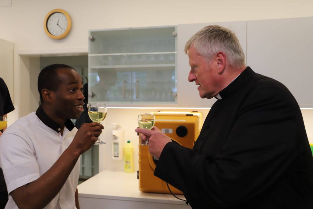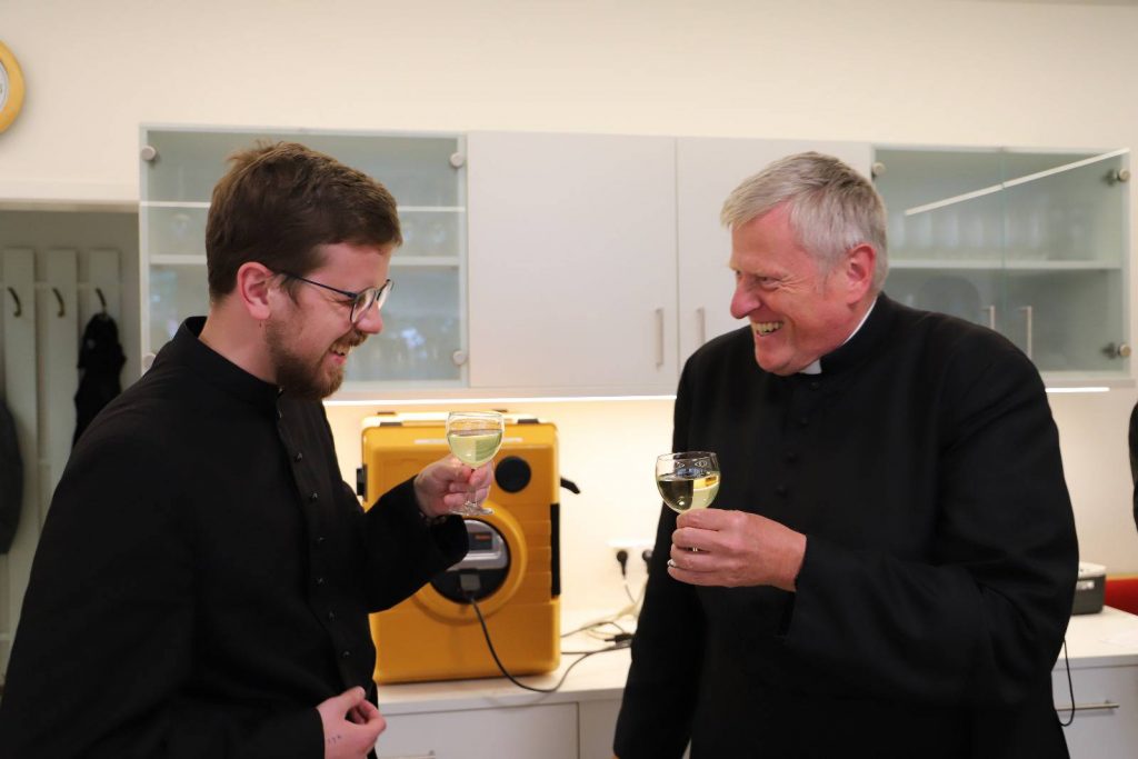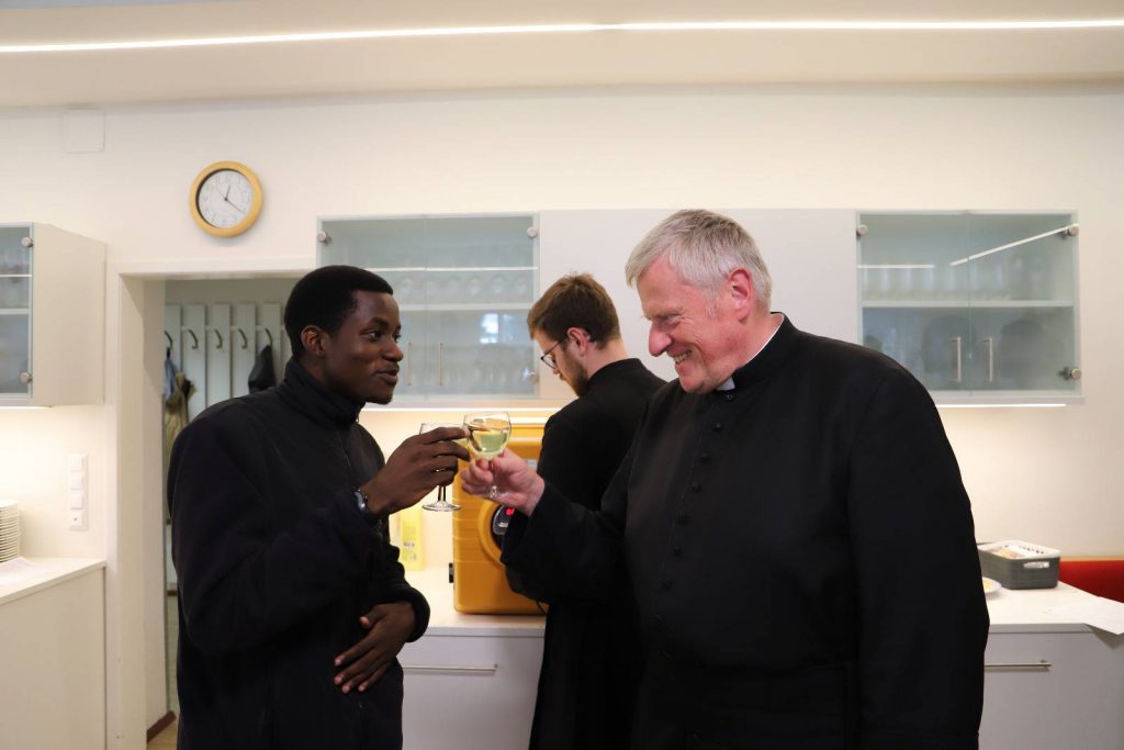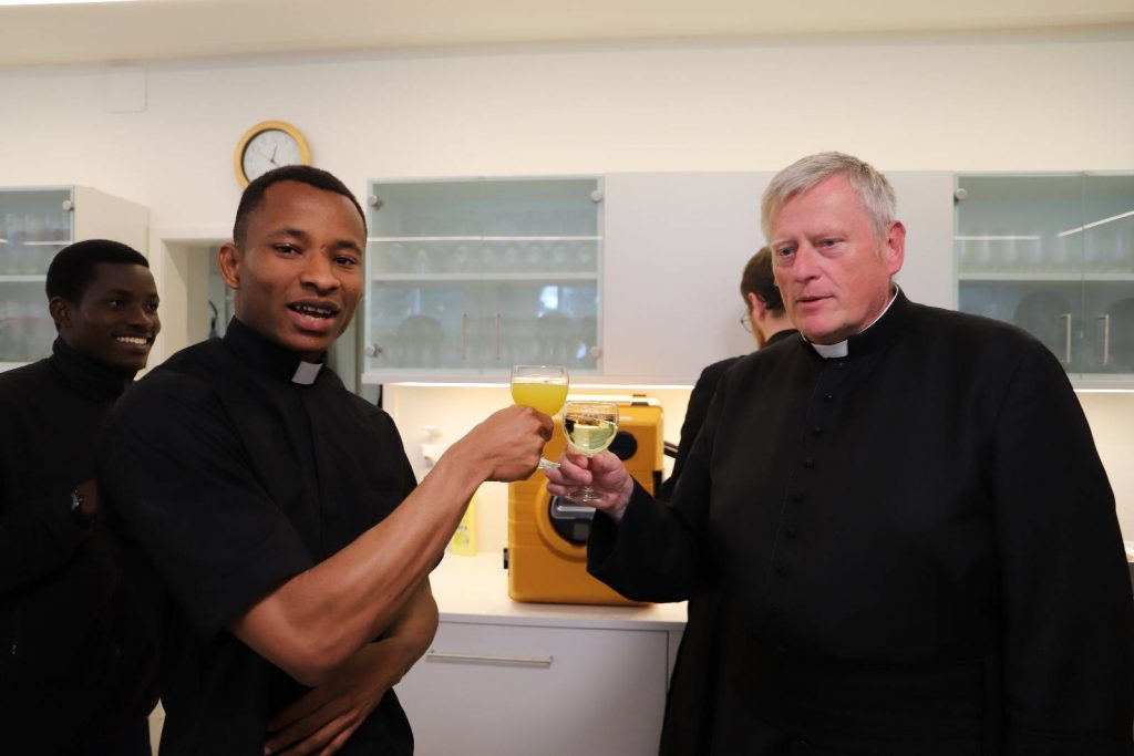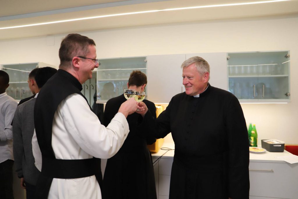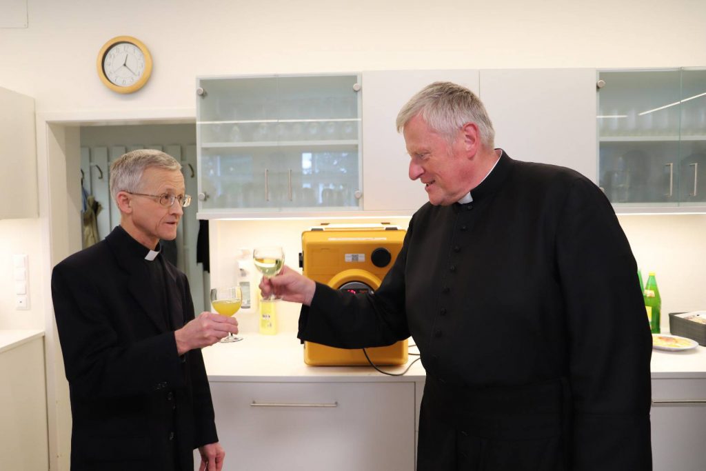 Ein paar Tage verspätet, weil der Geburtstag unseres Direktors in die Pfingstferien fiel, wurde die Gratulation heute beim Mittagessen nachgeholt. Direktor Leitner bezeugte, dass es eine Freude sei, das Leopoldinum »bei so einer guten Truppe« zu leiten.
